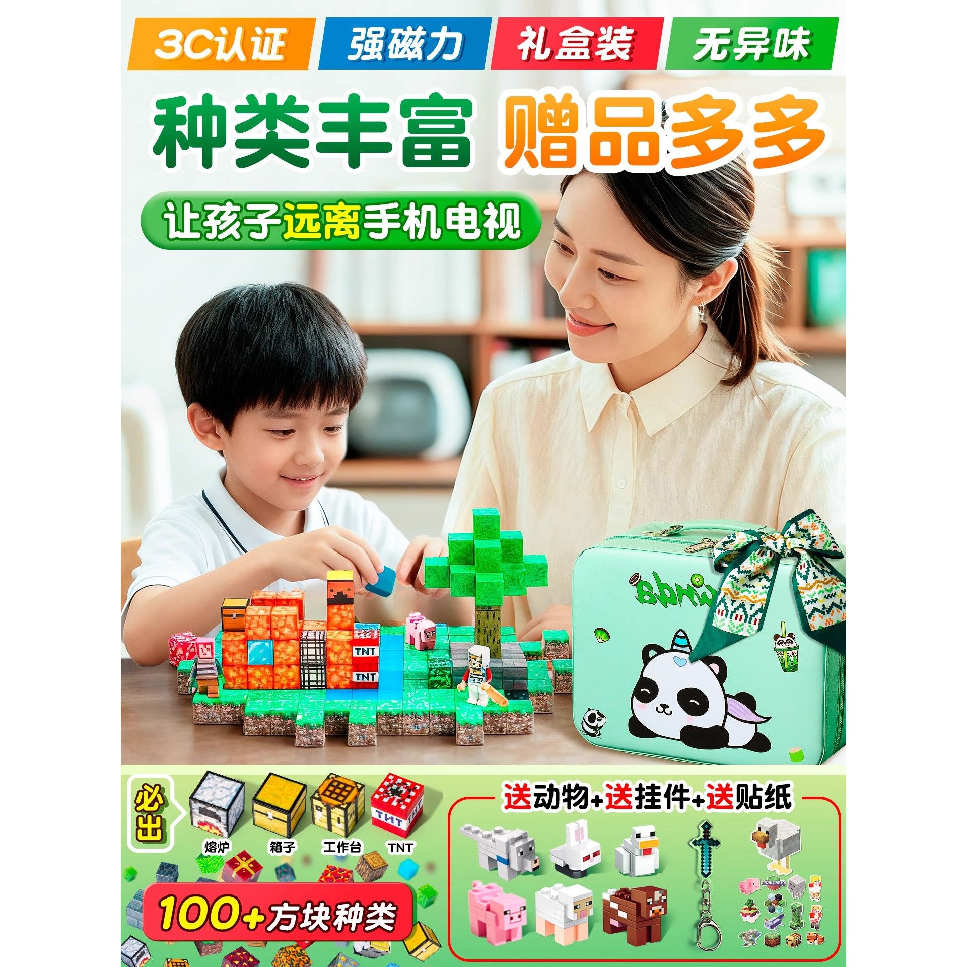 益智玩具男孩3到6 积木2025儿童爆款 我 世界磁力磁铁方块全套正版