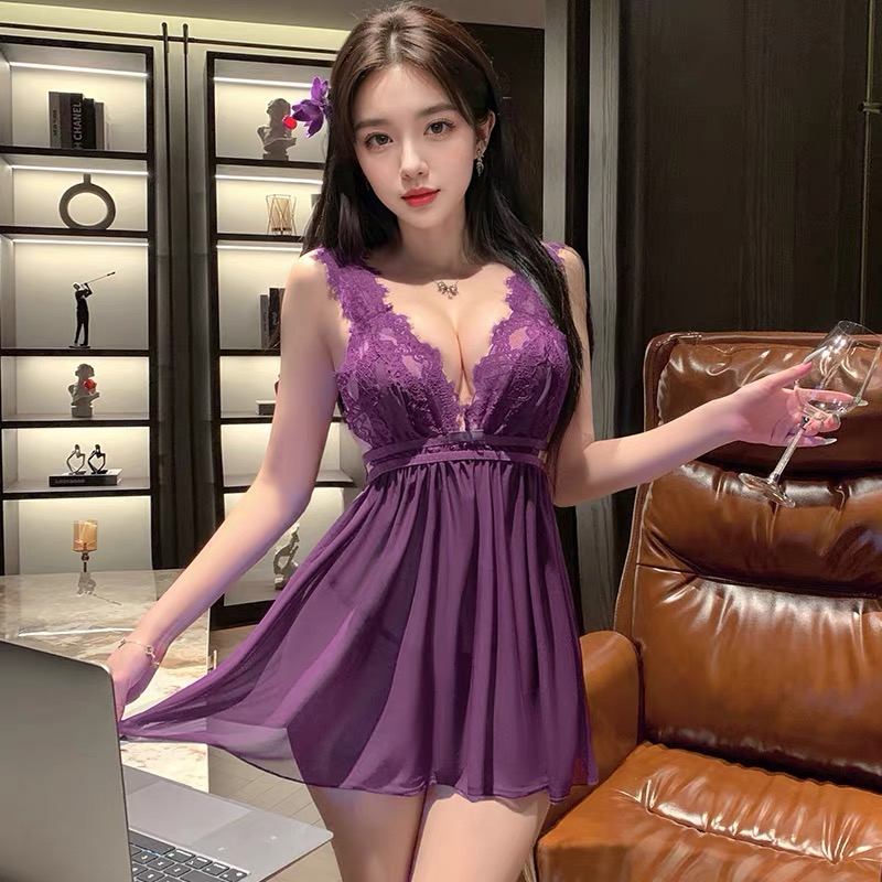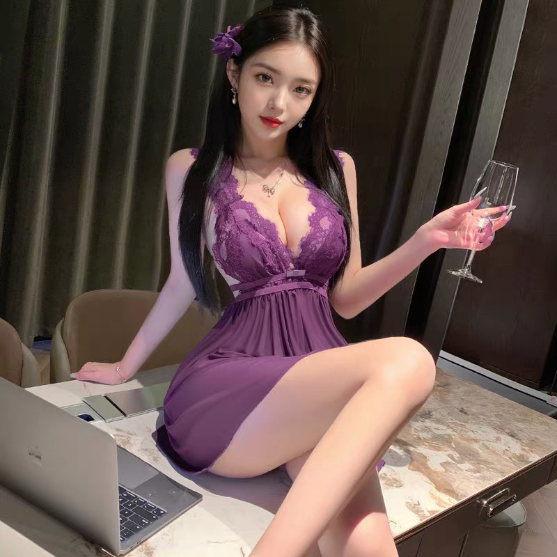 2025新款 性感冰丝睡袍纯欲风高级感蕾丝吊带睡衣 睡裙女春秋夏薄款