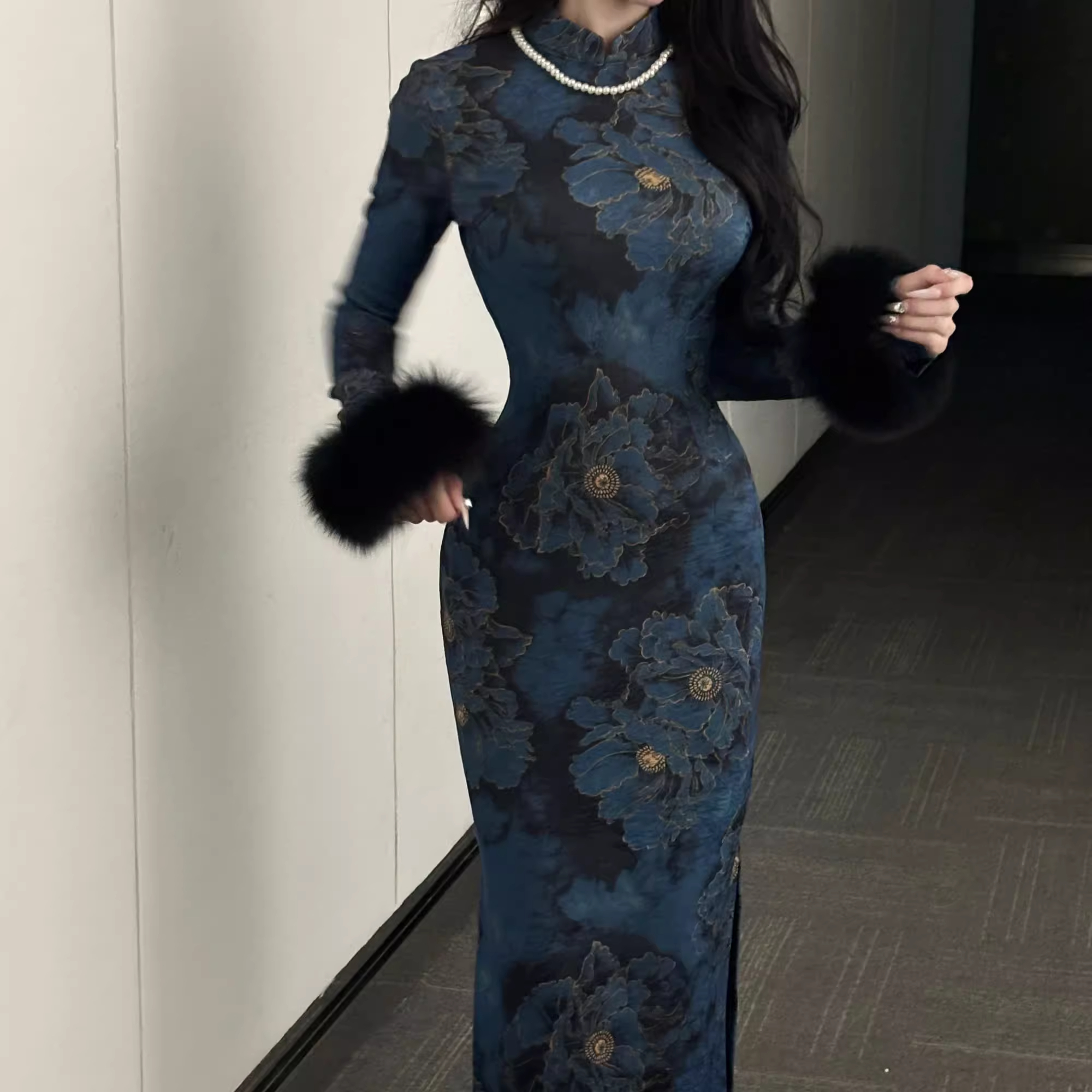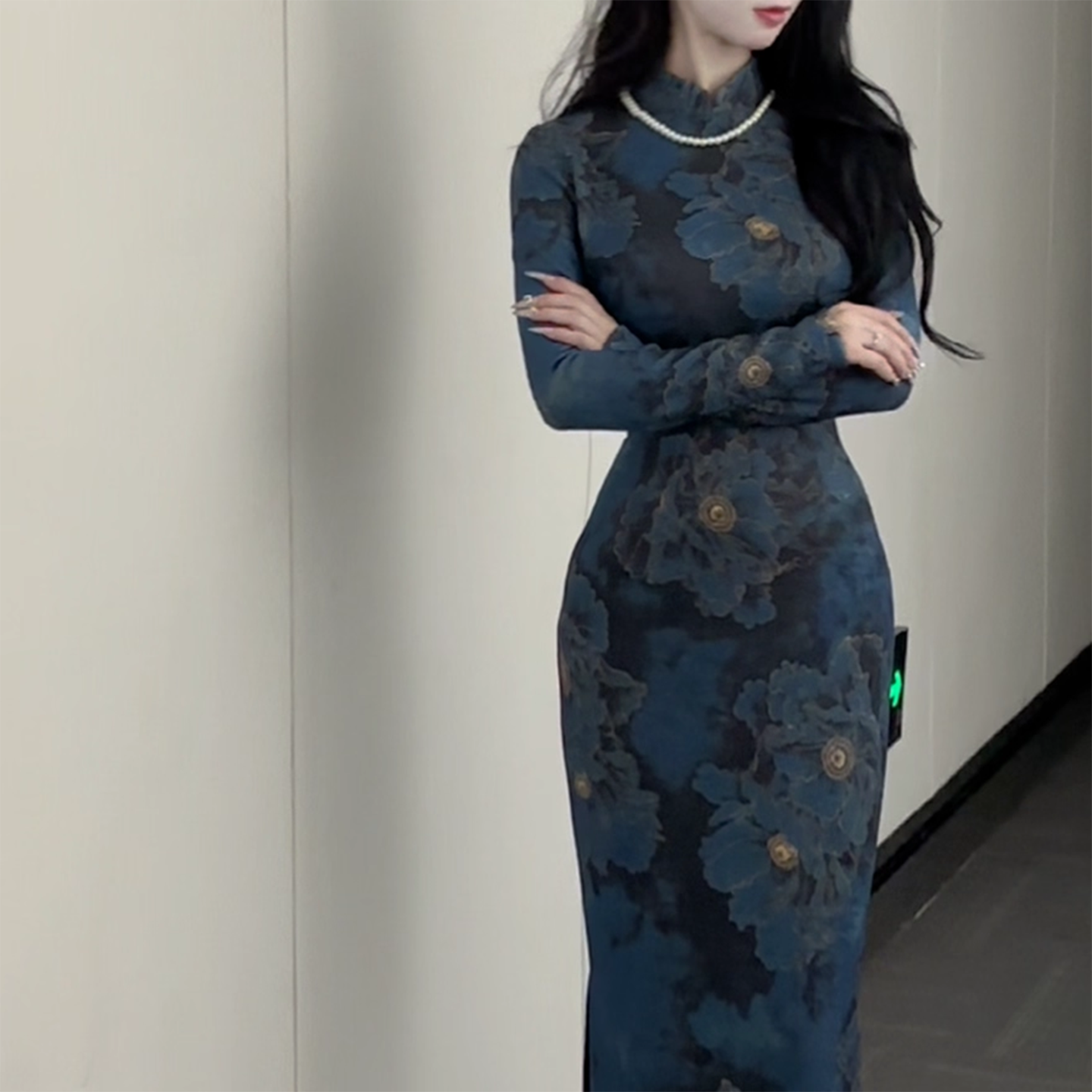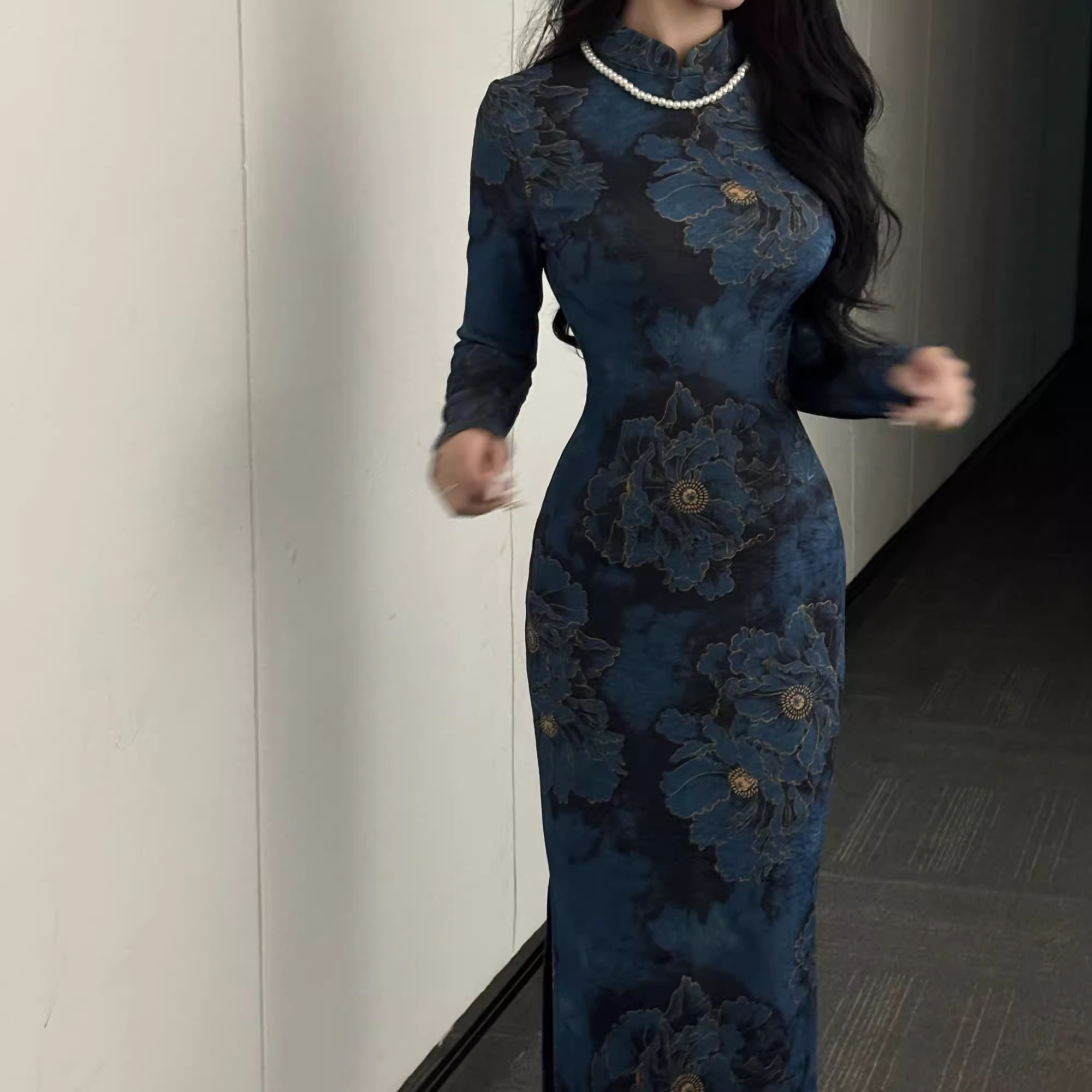厚款 旗袍2025新款 兰陵王 针织提花旗袍连衣裙新中式 自制秋冬厚款