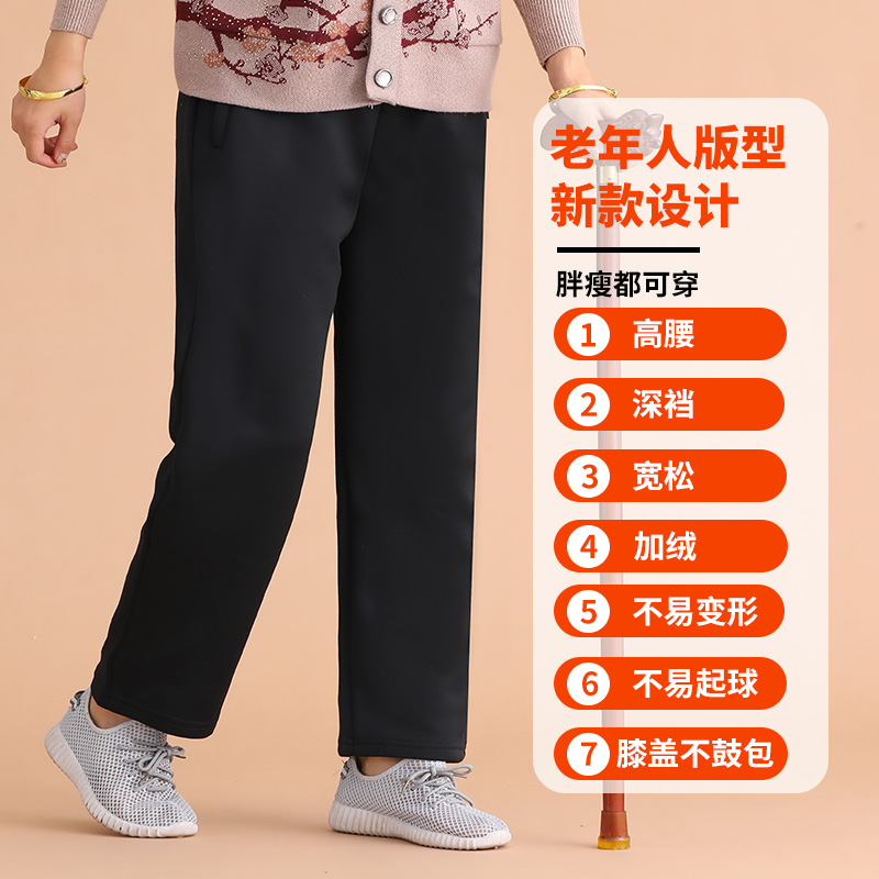 子外穿60岁运动裤 宽松直筒保暖老人裤 子 加绒加厚奶奶裤 中老年女装