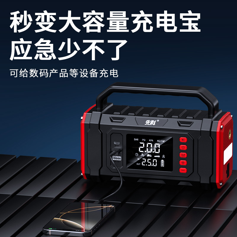 随途4合1无线应急启动充气泵三节电池高续航气泵打火一体储能电源