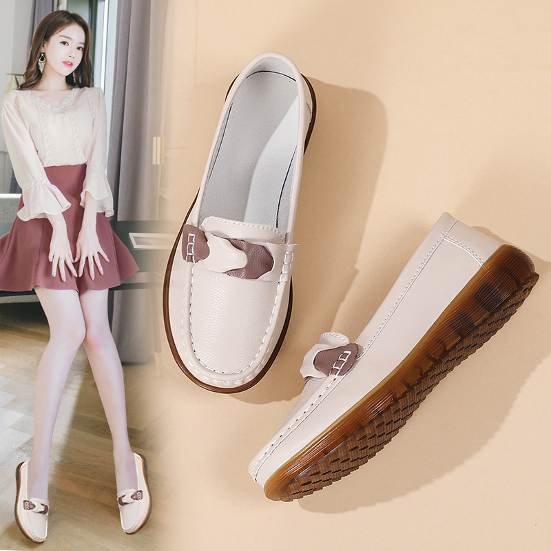一脚蹬妈妈豆豆鞋 软面真皮牛筋底休闲乐福鞋 女平底舒适软底小皮鞋