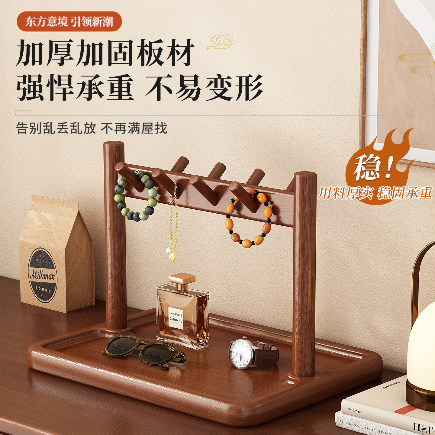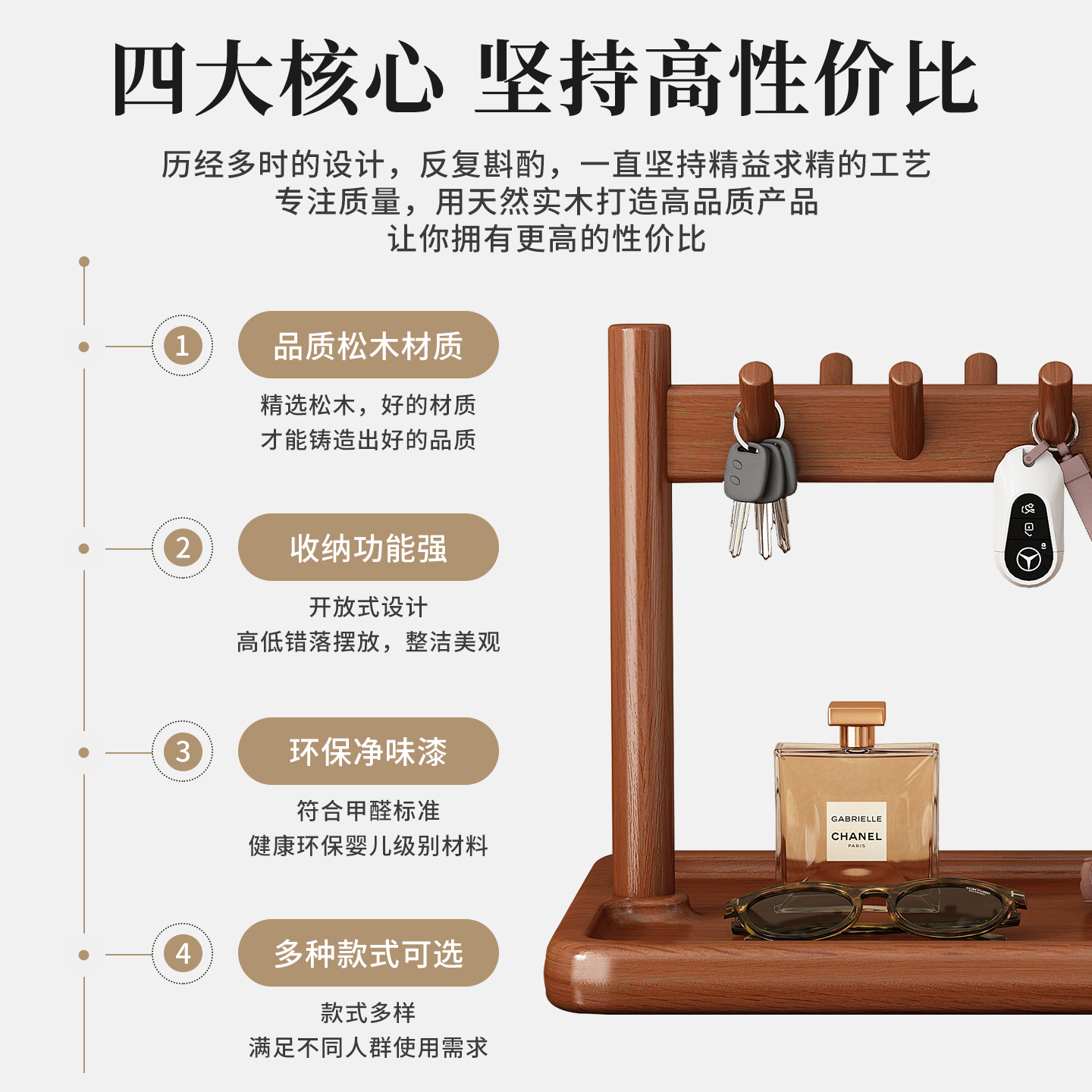 钥匙收纳玄关摆件桌面置物架实木入户进门首饰展示挂架眼镜放置架