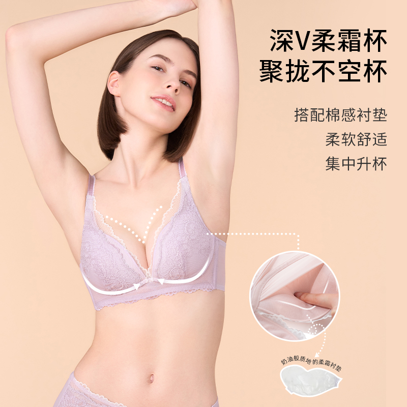 peach 小胸深V透气防下垂上托文胸罩2025年 box内衣女蕾丝性感套装