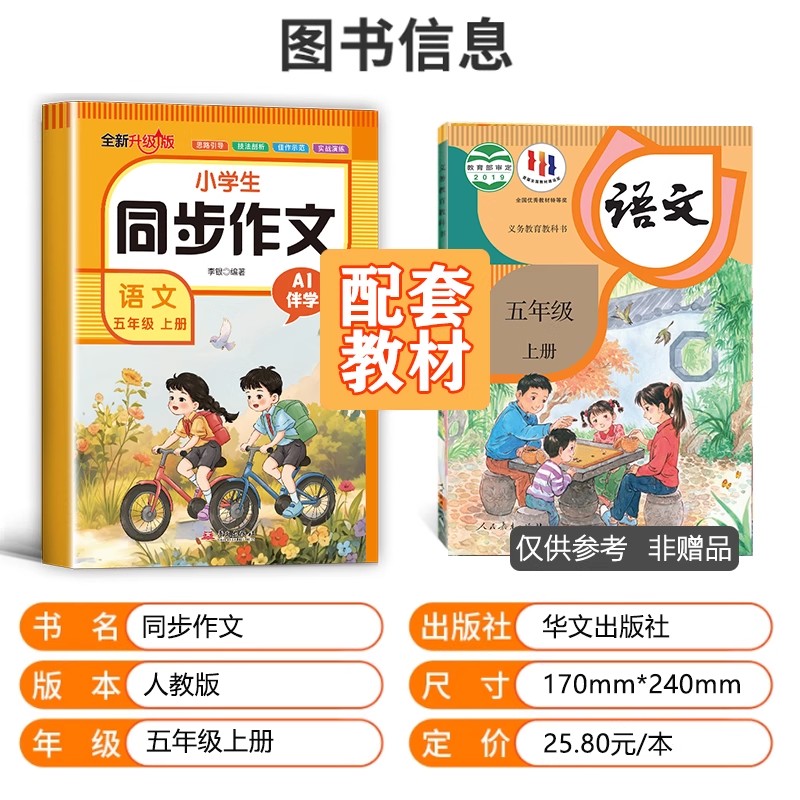 小学作文书小学生黄冈优秀作文大全5年级作文范文仿写素材全解语文满分作文下册写作辅导书 五年级上册同步作文人教版 2025新版