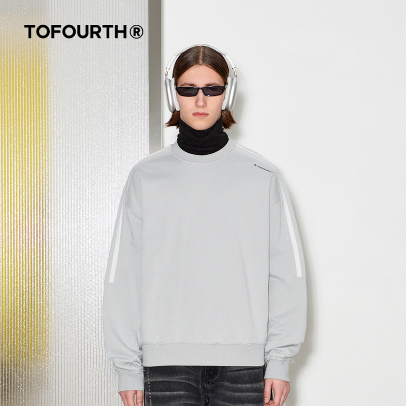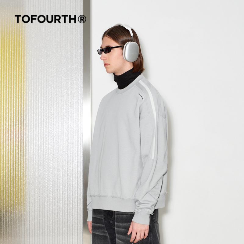 线条拼接灰色卫衣圆领套头上衣宽松男女款 商场同款 TOFOURTH ISS