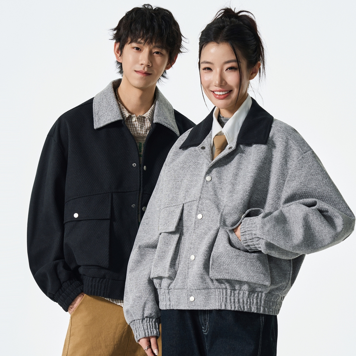风cleanfit 休闲夹克外套男女撞色工装 雪中飞2025秋新款 毛呢情侣款