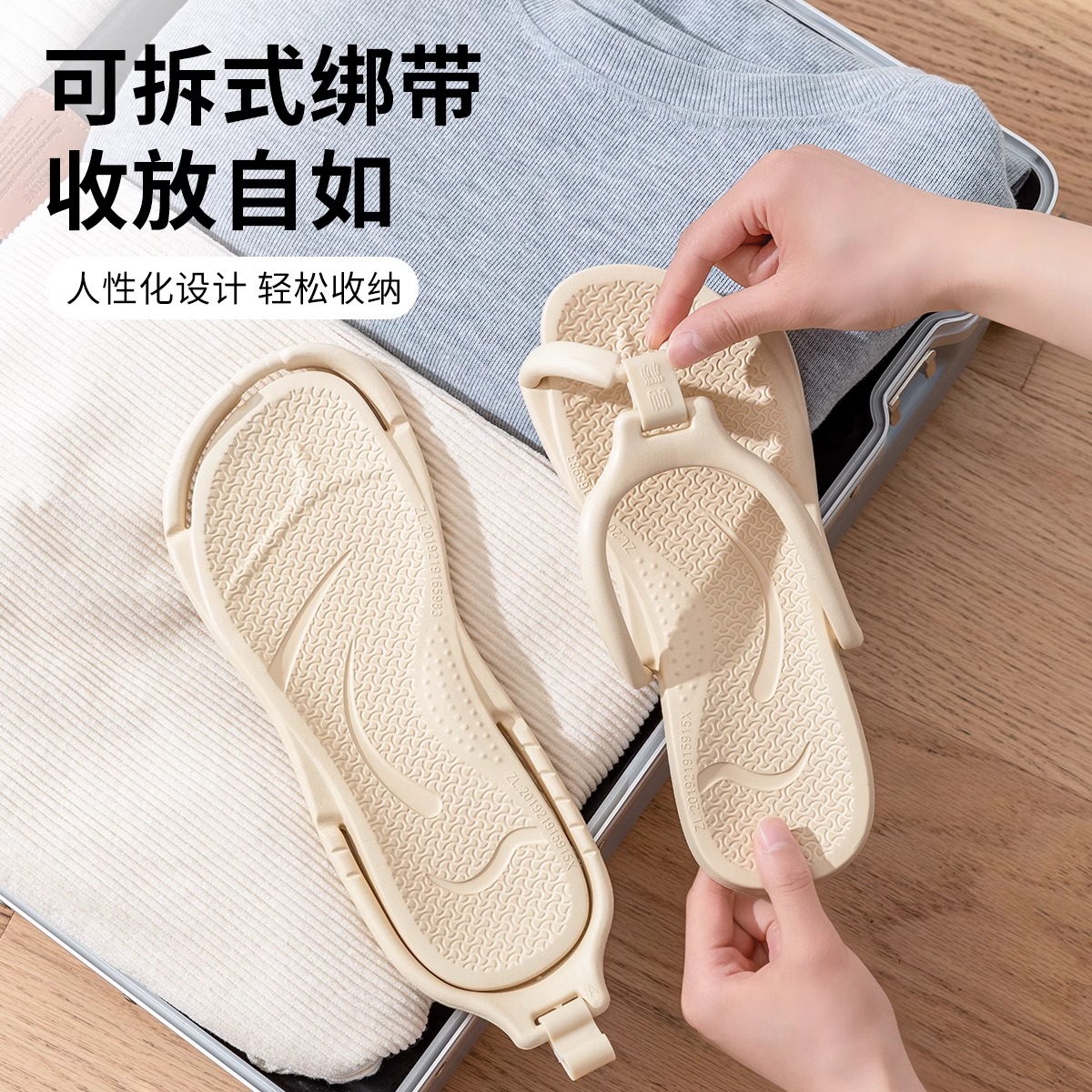 游泳户外防滑凉拖男 可折叠夏季 旅游必备用品沙滩拖鞋 女旅行便携式