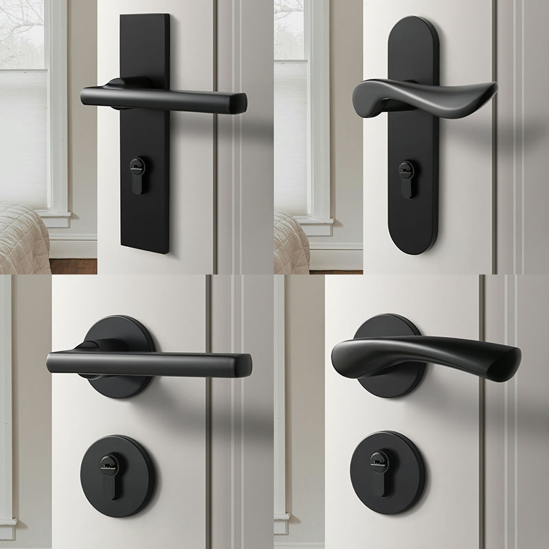 黑色室内门锁家用房门锁卧室门把手分体锁具通用型房间静音磁吸锁
