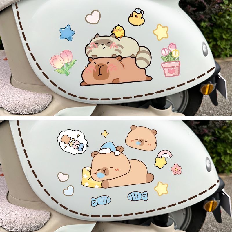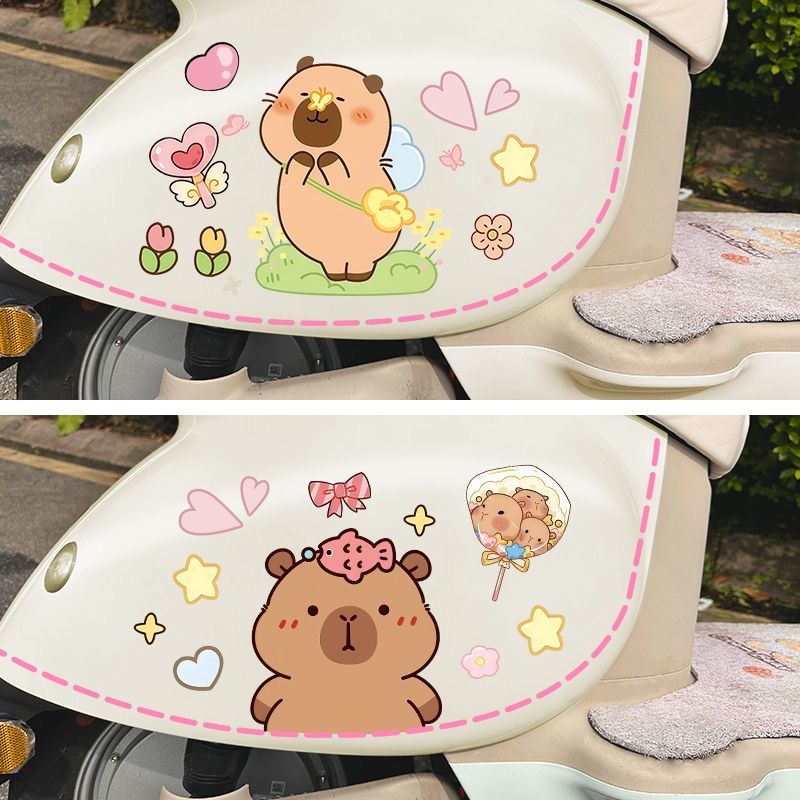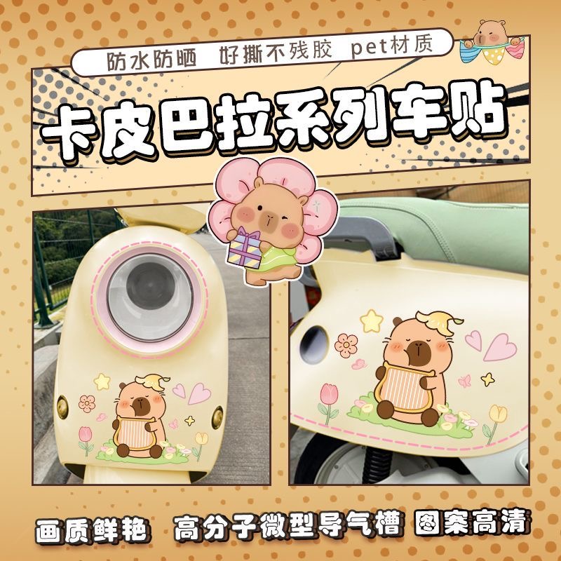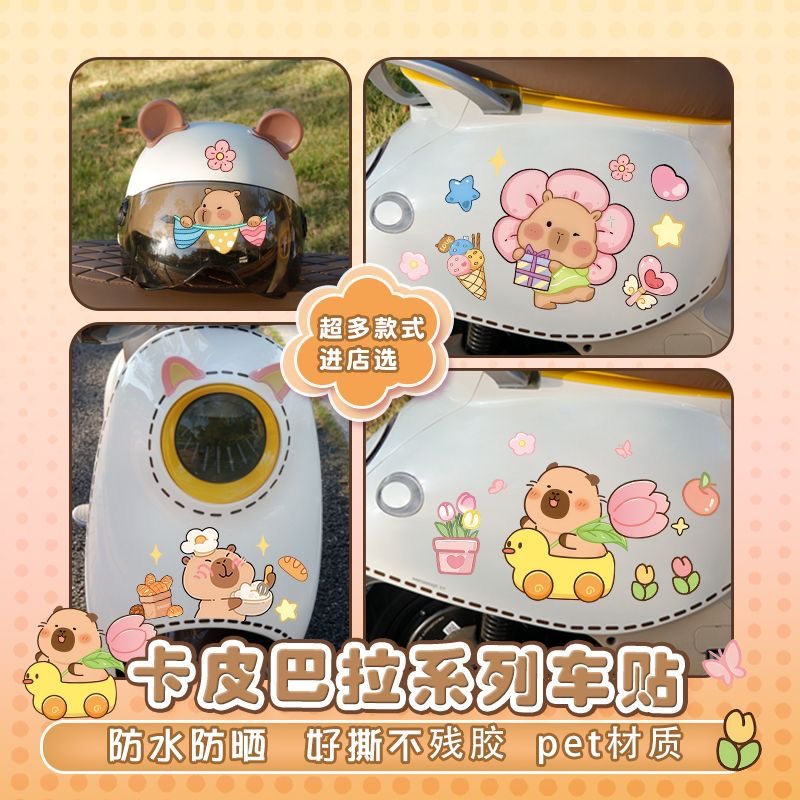 电动车贴纸卡通个性 饰行李箱头盔摩托车贴画 可爱卡皮巴拉贴纸装