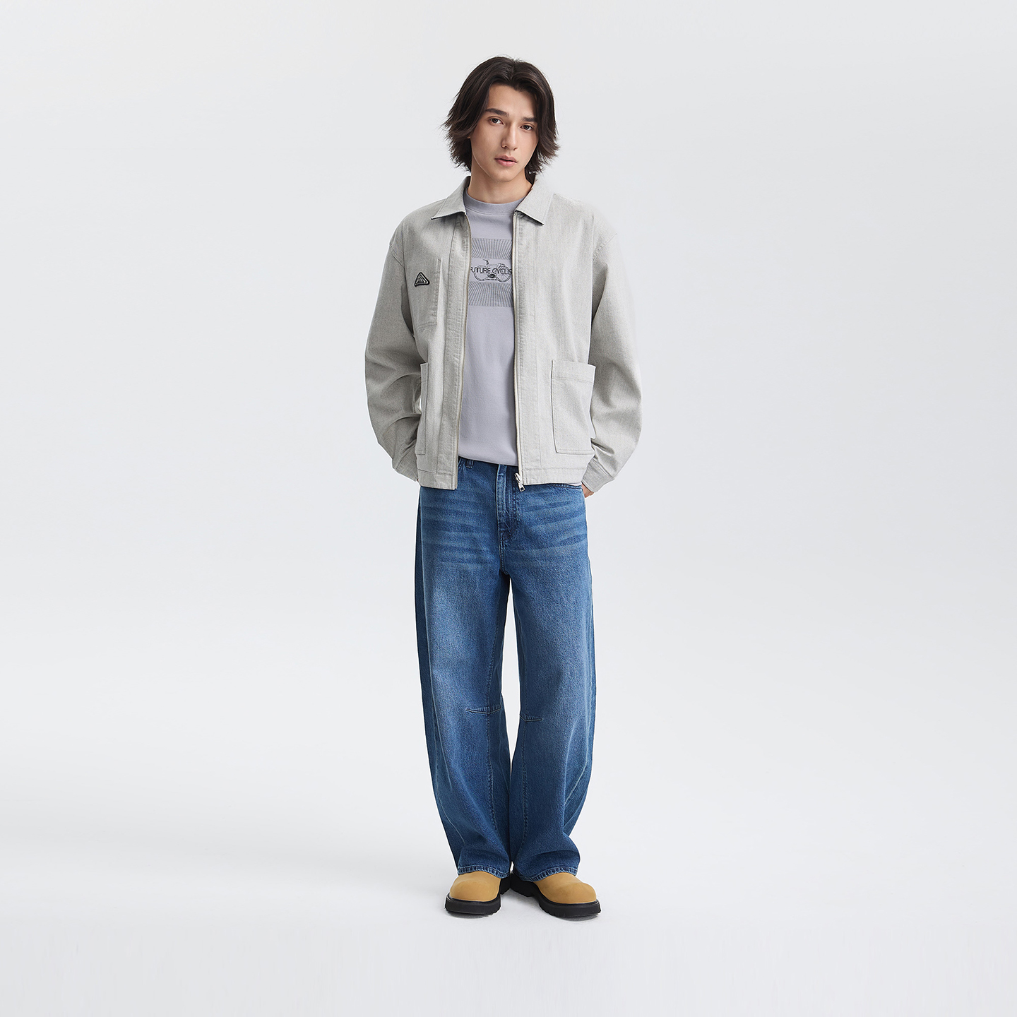 森马牛仔裤 裤 男宽松直筒拖地裤 夏季 子显高 垂感复古长裤 森柔牛仔