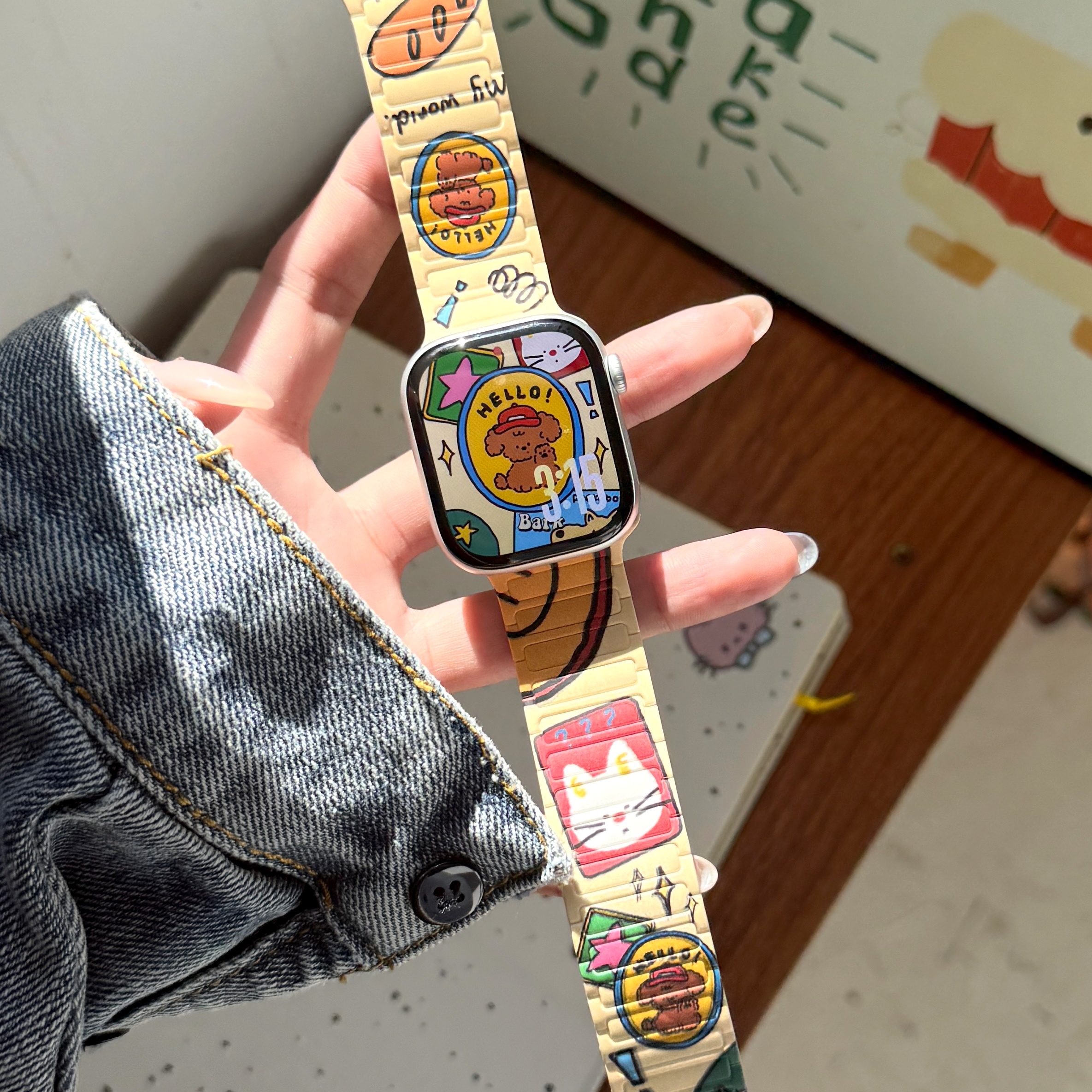 酷活适用于iwatch11苹果手表applewatch10表带s9可爱卡通合集s8硅胶s7透气Ultra23新款 6情侣小众腕带 45SE女款