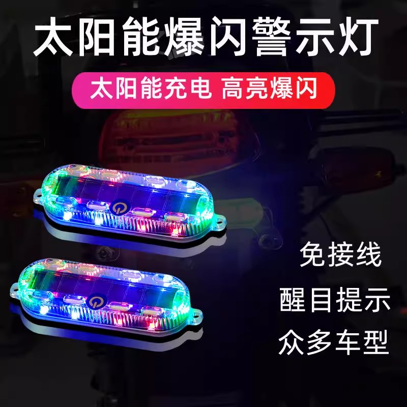 汽车摩托车太阳能警示爆闪灯电动车防追尾灯闪光免接线呼吸后尾灯