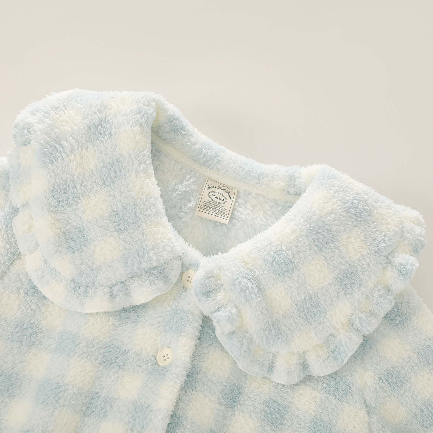 柔软宽松长袖 格子绒绒抗静电睡衣套装 家居服508344 三福女冬季