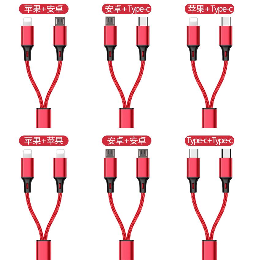 c充电器双头安卓一拖二数据线2二合一快充适用苹果华为和全多头tpc线一 适用于iphone手机type 旗舰店正品