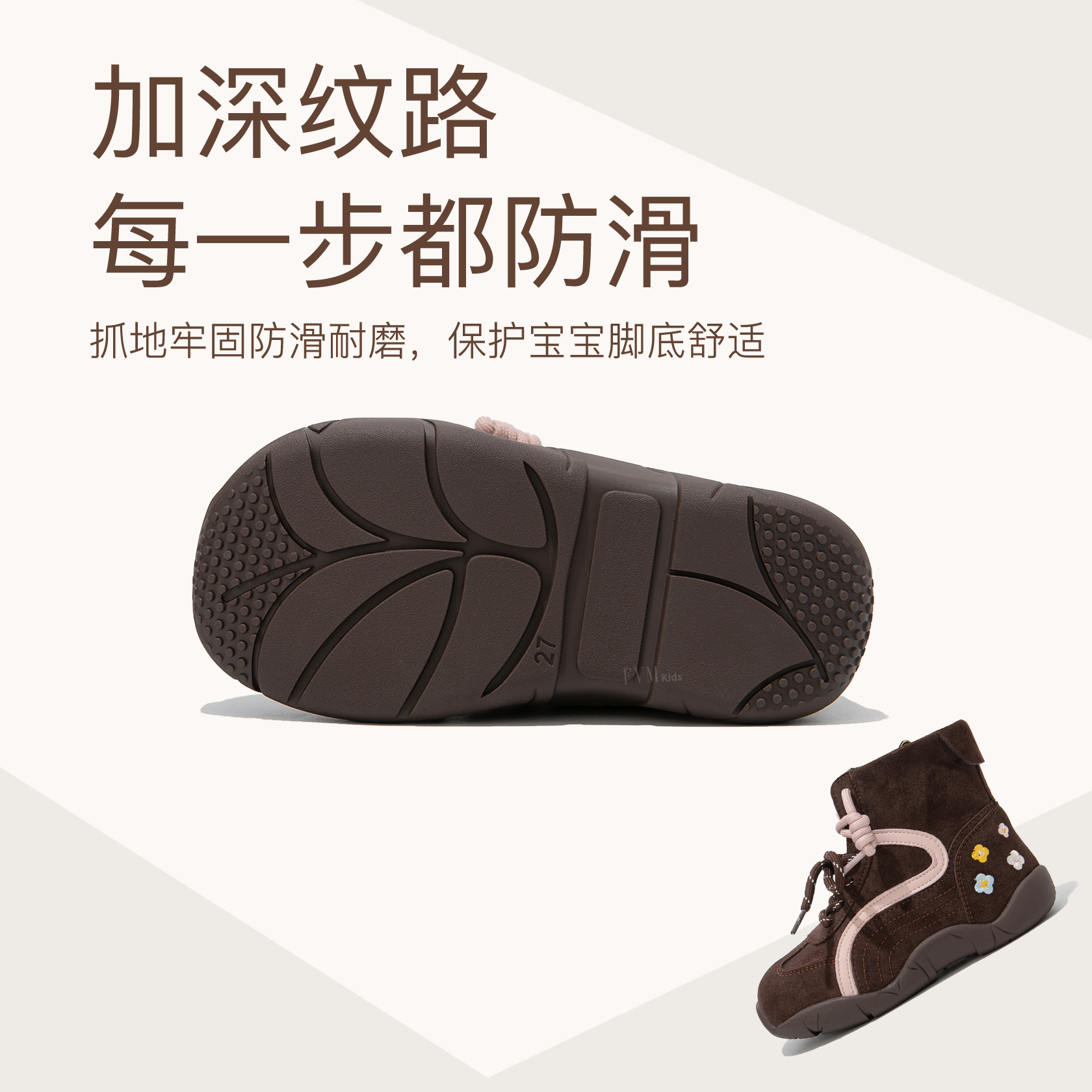 巴布豆真皮马丁靴女童靴子儿童短靴2025秋冬新款 加绒百搭大棉靴潮