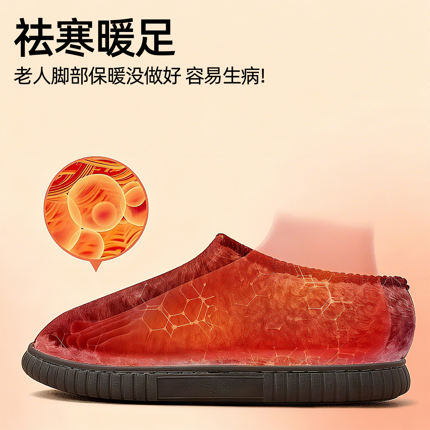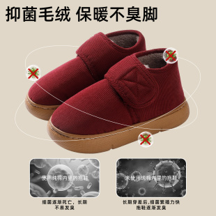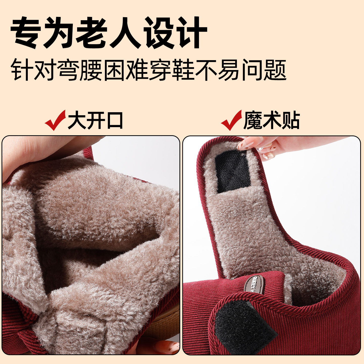 中老年人爸爸防滑防摔室内家居用魔术贴保暖棉鞋 包跟棉拖鞋 男冬季