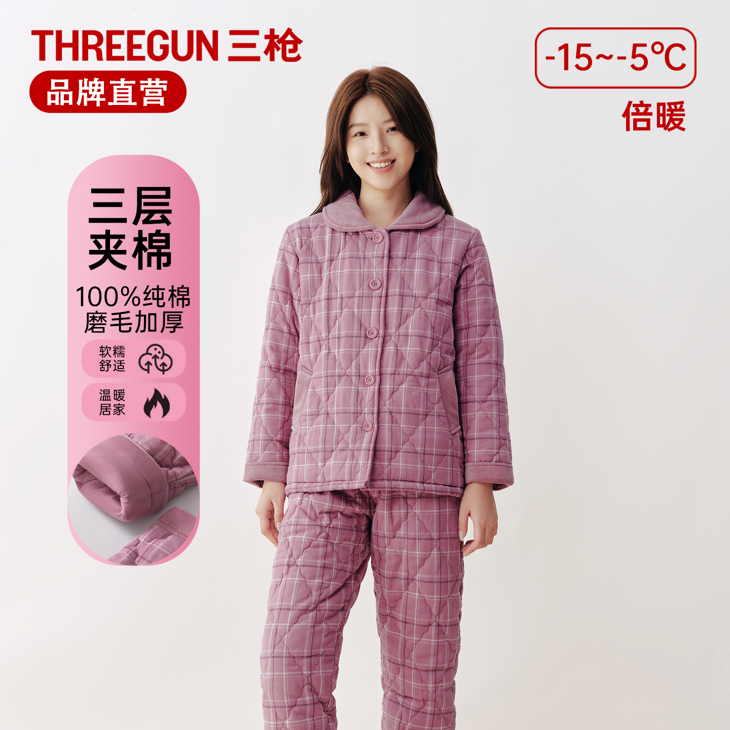带胸垫防凸点全棉家居服套装 秋冬款 长袖 纯棉秋季 睡衣女士2025新款