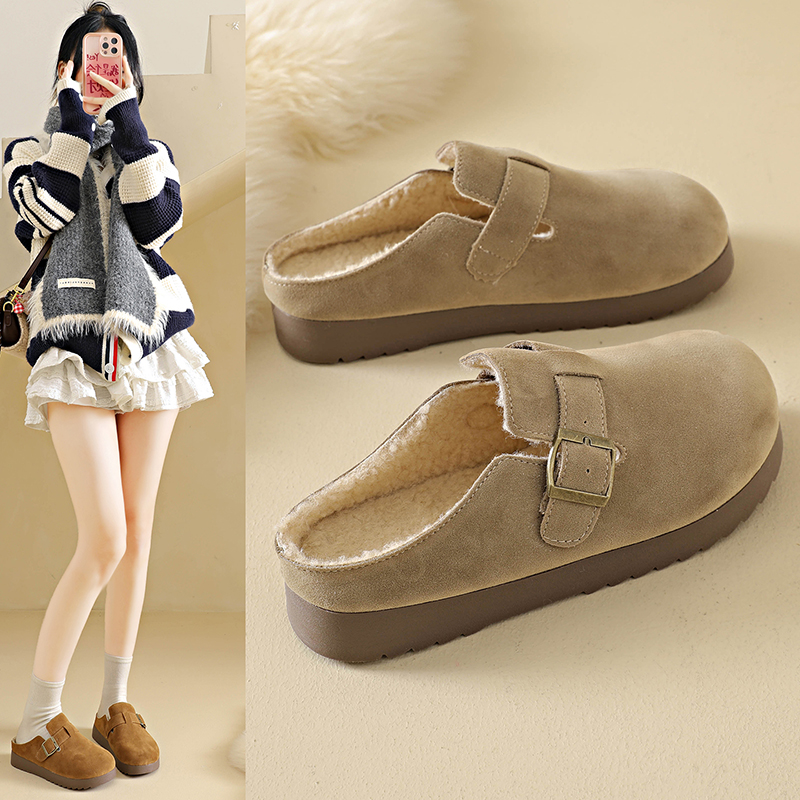 D1P1DAH5预 加毛厚底包头休闲鞋 方枪枪同款 百丽厚切吐司勃肯拖鞋