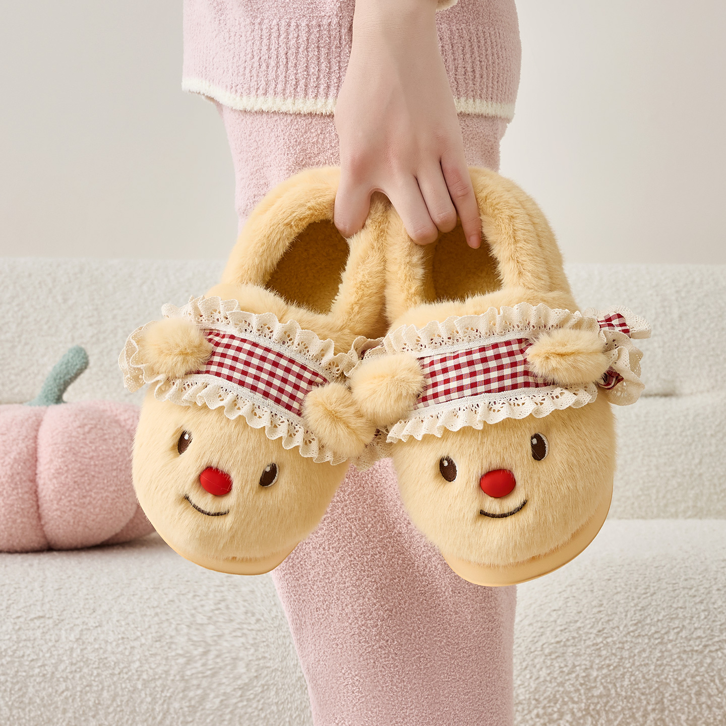 室内家居防滑加绒小熊毛绒保暖月子棉拖 2025新款 可爱棉拖鞋 女冬季