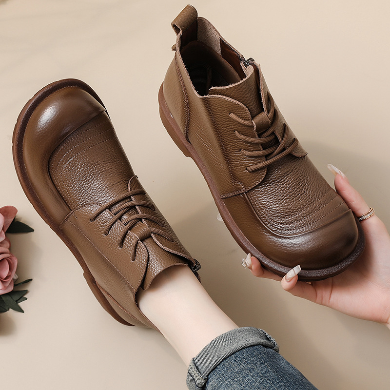 美拉德棕色靴子厚底黑色短靴 秋复古女鞋 英伦风马丁靴女款 2025新款