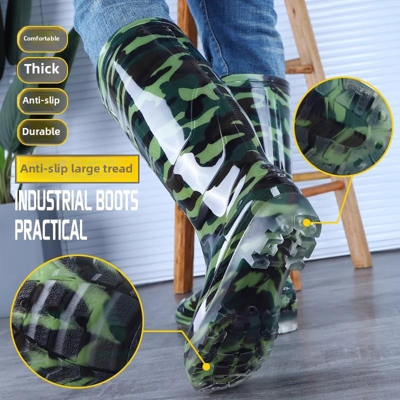 高帮水鞋 雨鞋 军工耐油耐酸碱高筒牛筋底防滑耐磨工地雨靴德系男士