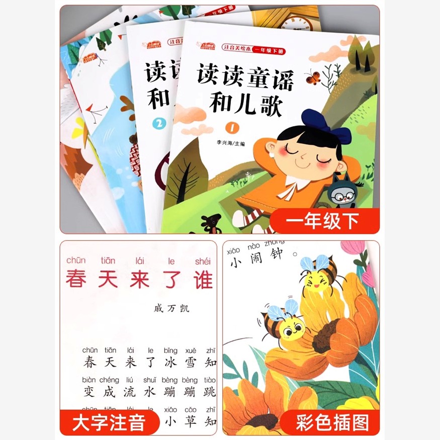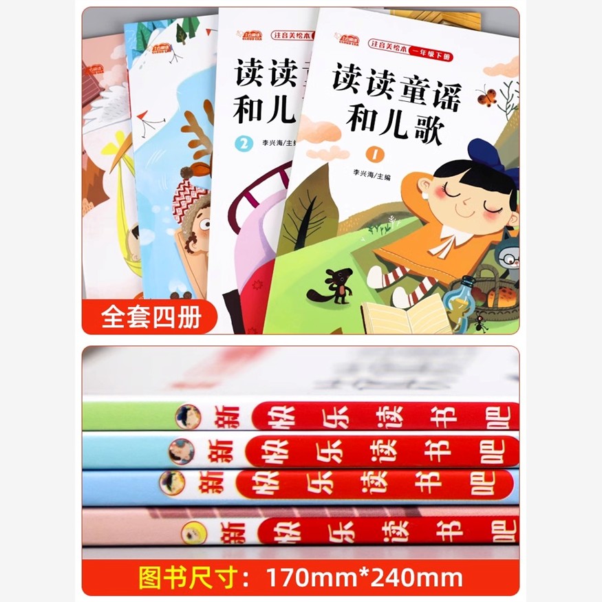 正版 一年级下册阅读课外书必读全套4册 1年级课本配套同步故事书老师推荐 和大人一起读人教版 快乐读书吧书籍 读读童谣和儿歌注音版
