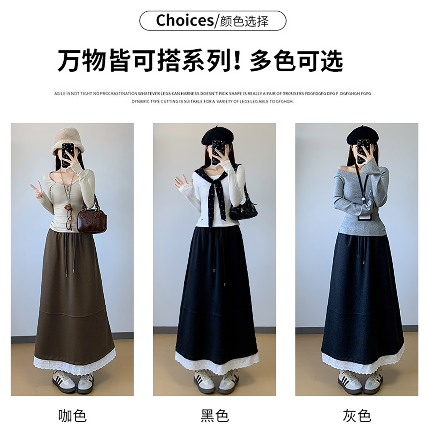 日系复古超好看半身裙子女士春秋装 小个子高腰显瘦夹棉A字裙 新款