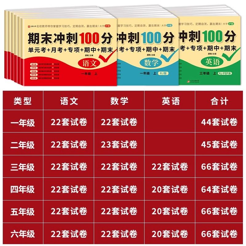 期末冲刺100分小学一二三四五六年级上册试卷测试卷全套配套人教版 卷子上 语文数学英语同步练习册题专项训练真题卷下册单元