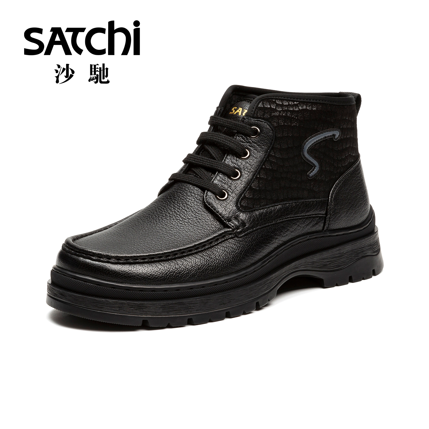 保暖羊皮毛一体高帮鞋 沙驰男鞋 加绒厚底雪地靴棉鞋 靴子冬季 男士