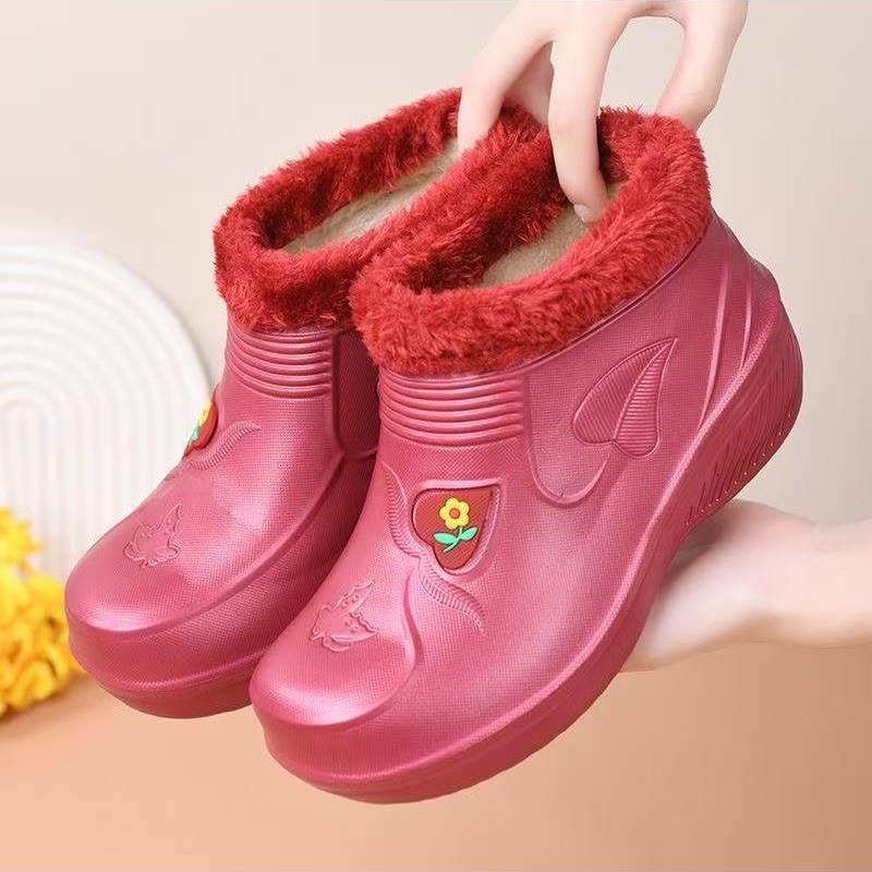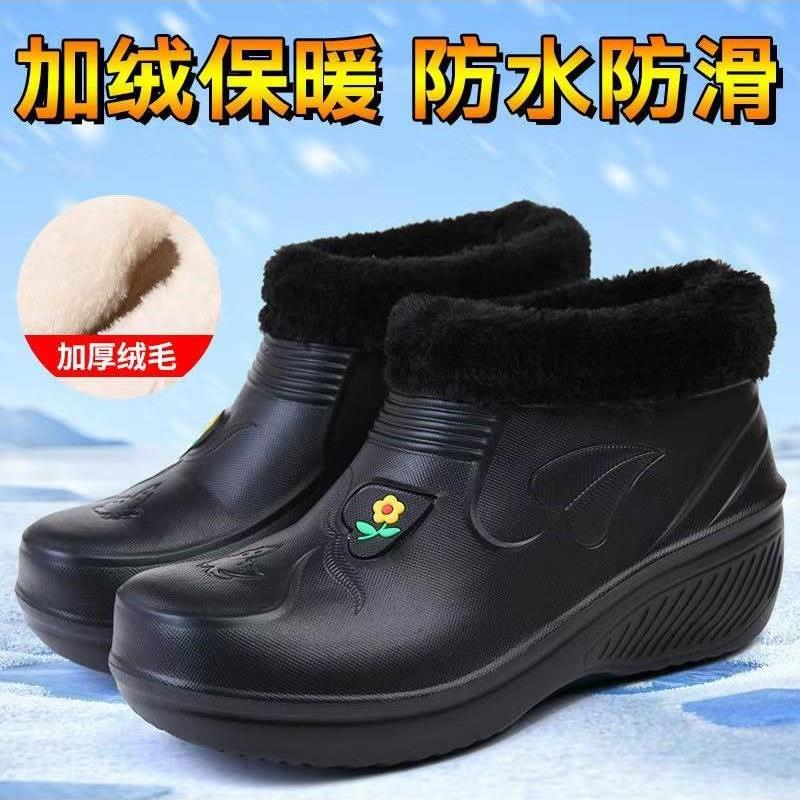 卡帝臣加厚雪地靴女泡沫雨靴泡沫型防水棉靴高腰冬天雨鞋 加绒工作