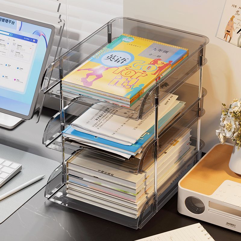 亚克力桌面收纳盒透明宿舍书桌文具书本置物架文件筐长方形杂物