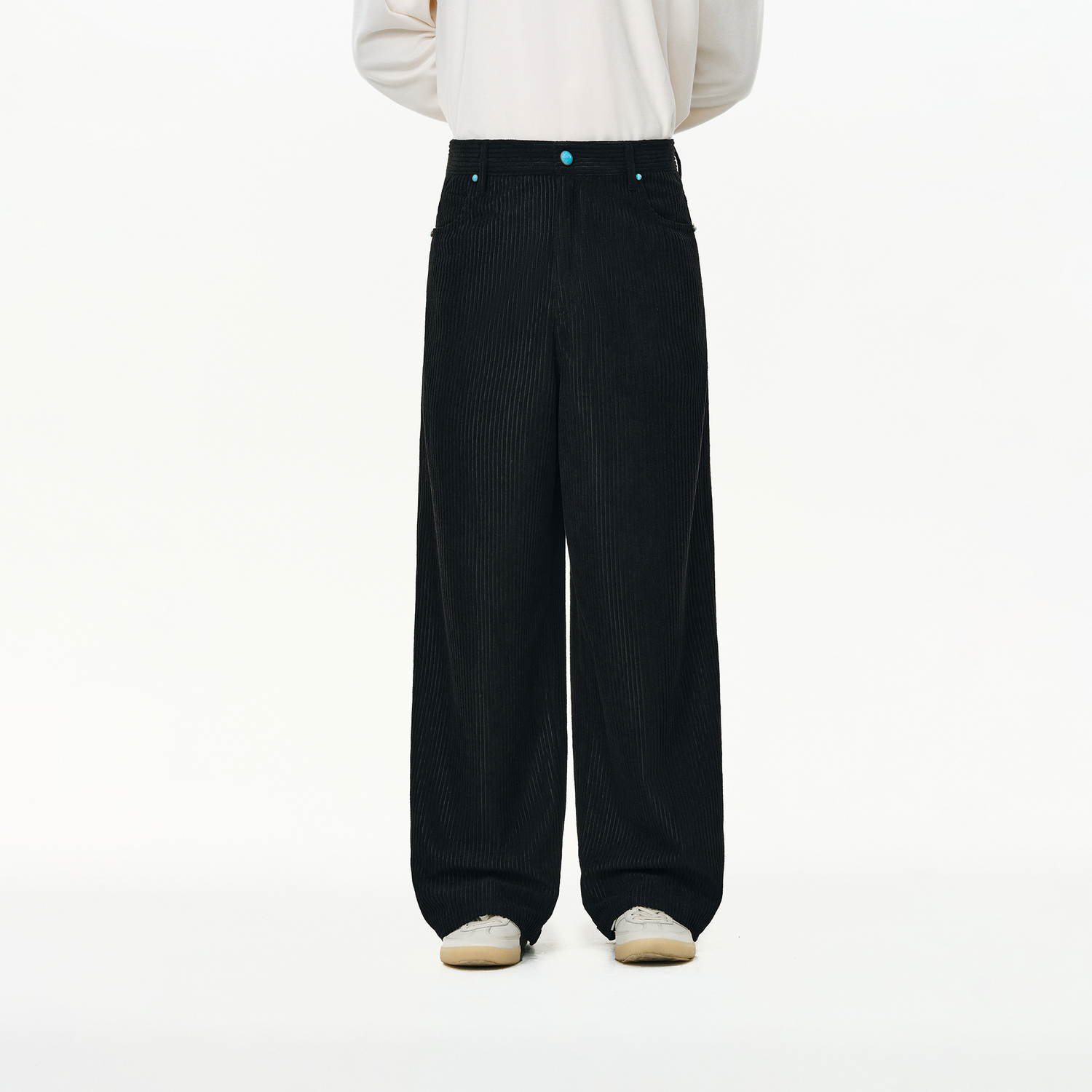 CetKy日系自带腰带小设计飘带直筒垂感黑色西裤 子 男宽松休闲长裤