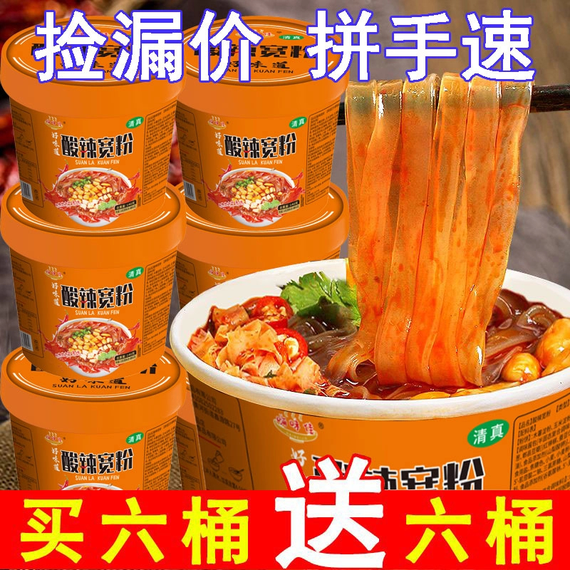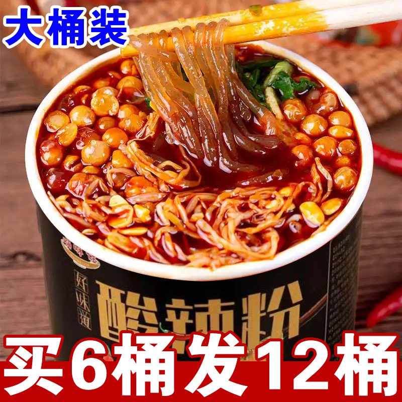 买4桶发8桶重庆酸辣粉桶装 正宗红薯粉泡面宿舍速食冲泡免煮宽粉