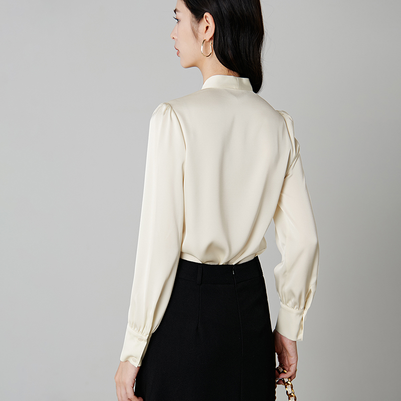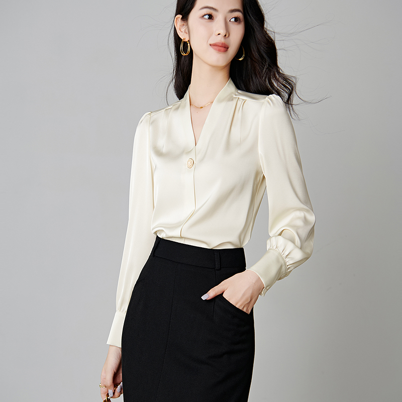 女 通勤衬衫 晚白2025年秋新款 气质轻熟V领高级感职场穿搭休闲时尚