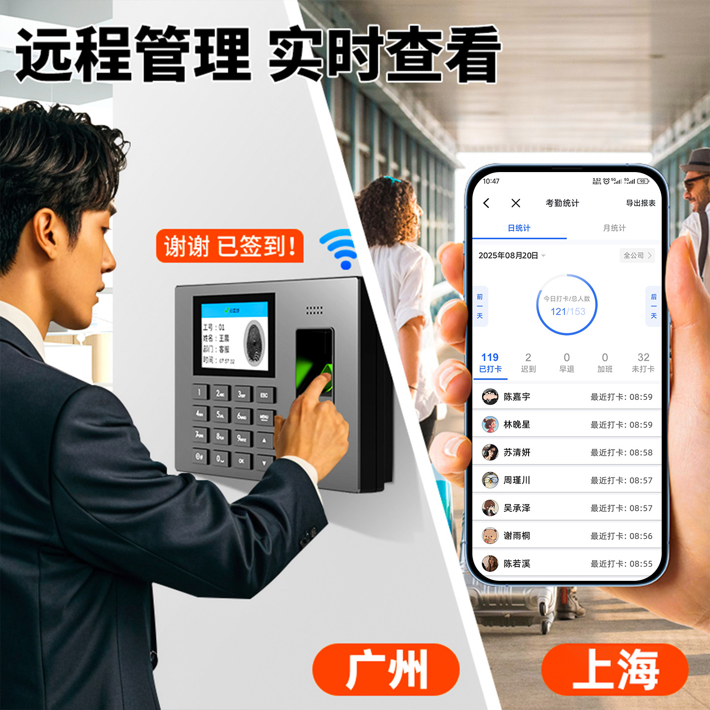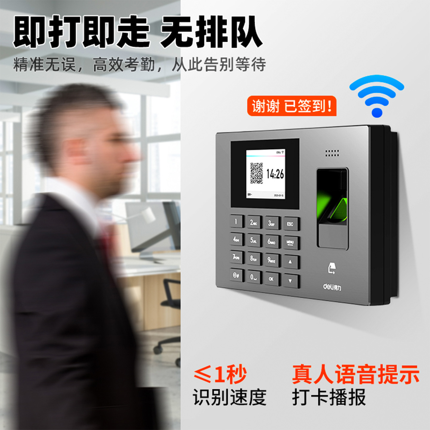得力指纹考勤机3960CSE智能云打卡机员工上下班考勤打卡机公司出勤异地多店考勤系统手机管理导出考勤数据表