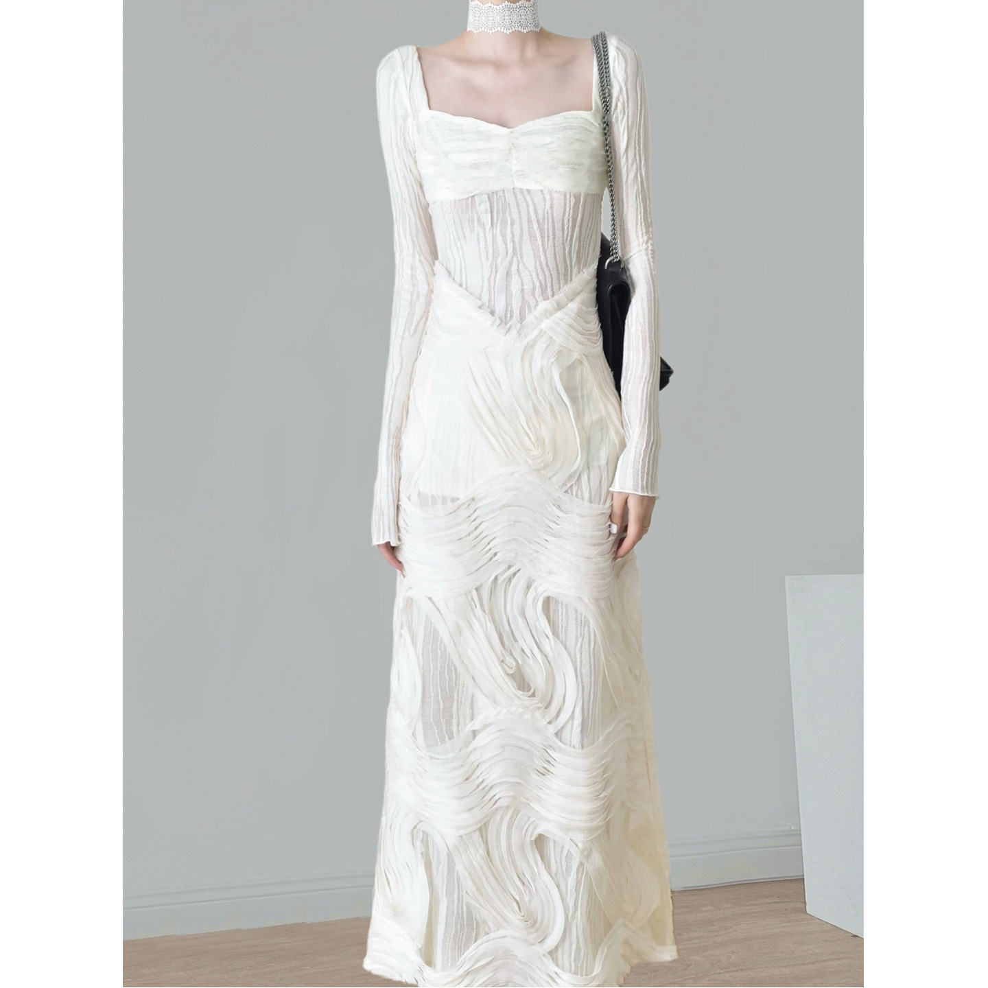 仙女长裙 显瘦绝美法式 高级感重工名媛气质白色礼服连衣裙秋季 新款