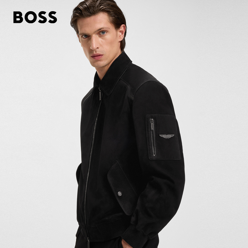 25年冬款 BOSS博斯 羊皮革 皮夹克 阿斯顿马丁联名