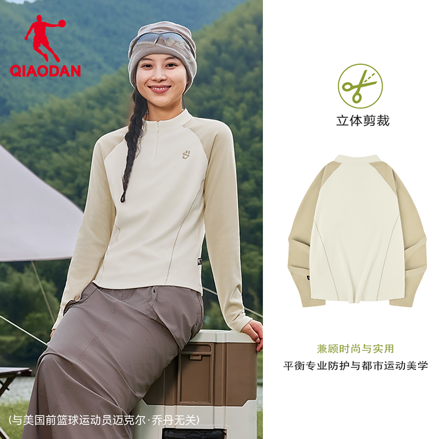 迪卡侬运动速干衣女长袖 T恤春秋半拉链上衣户外t恤健身打底SAL4