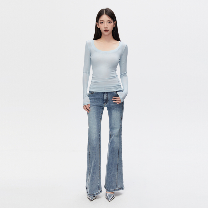 修身 打底衫 百搭上衣服 T恤女春秋内搭短款 设计感小众正肩纯棉长袖