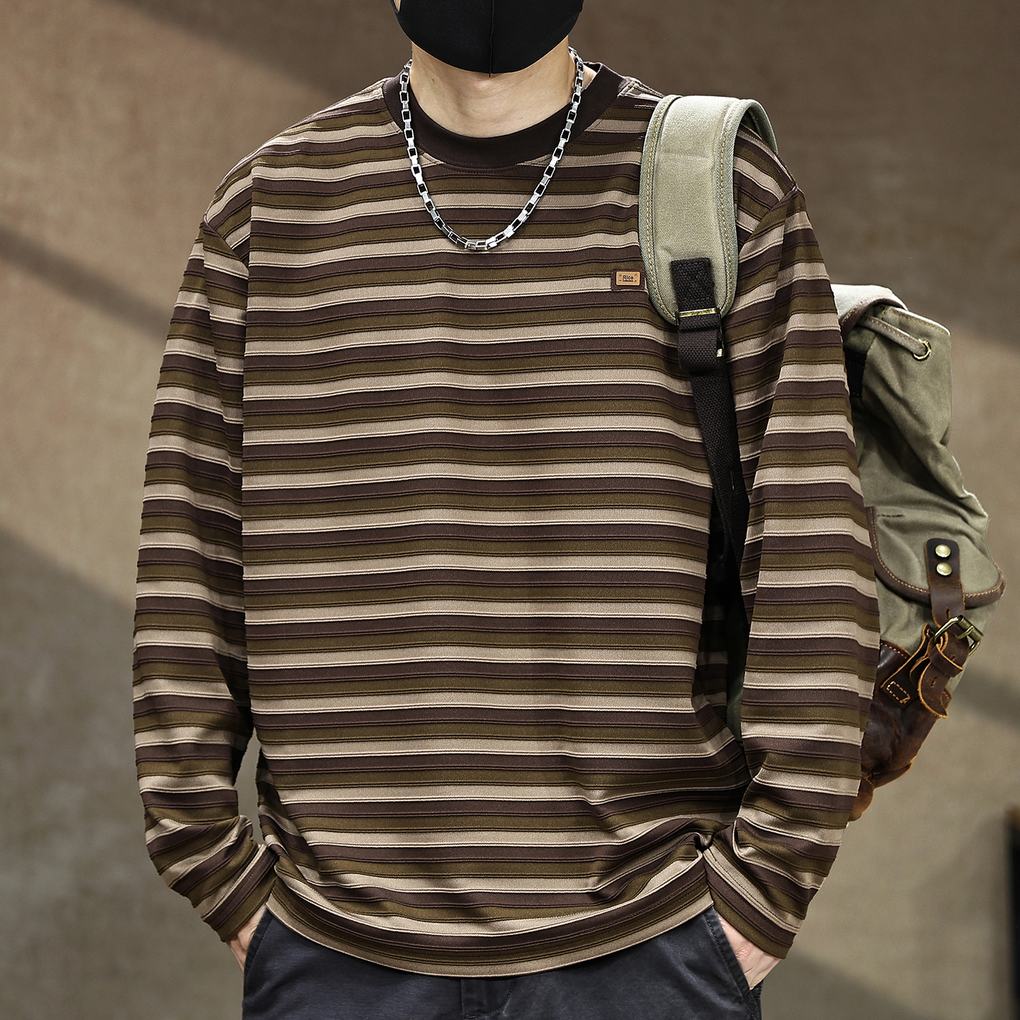 重磅条纹海魂衫 宽松圆领内搭打底衫 长袖 新款 男 T恤男2025秋季 美式