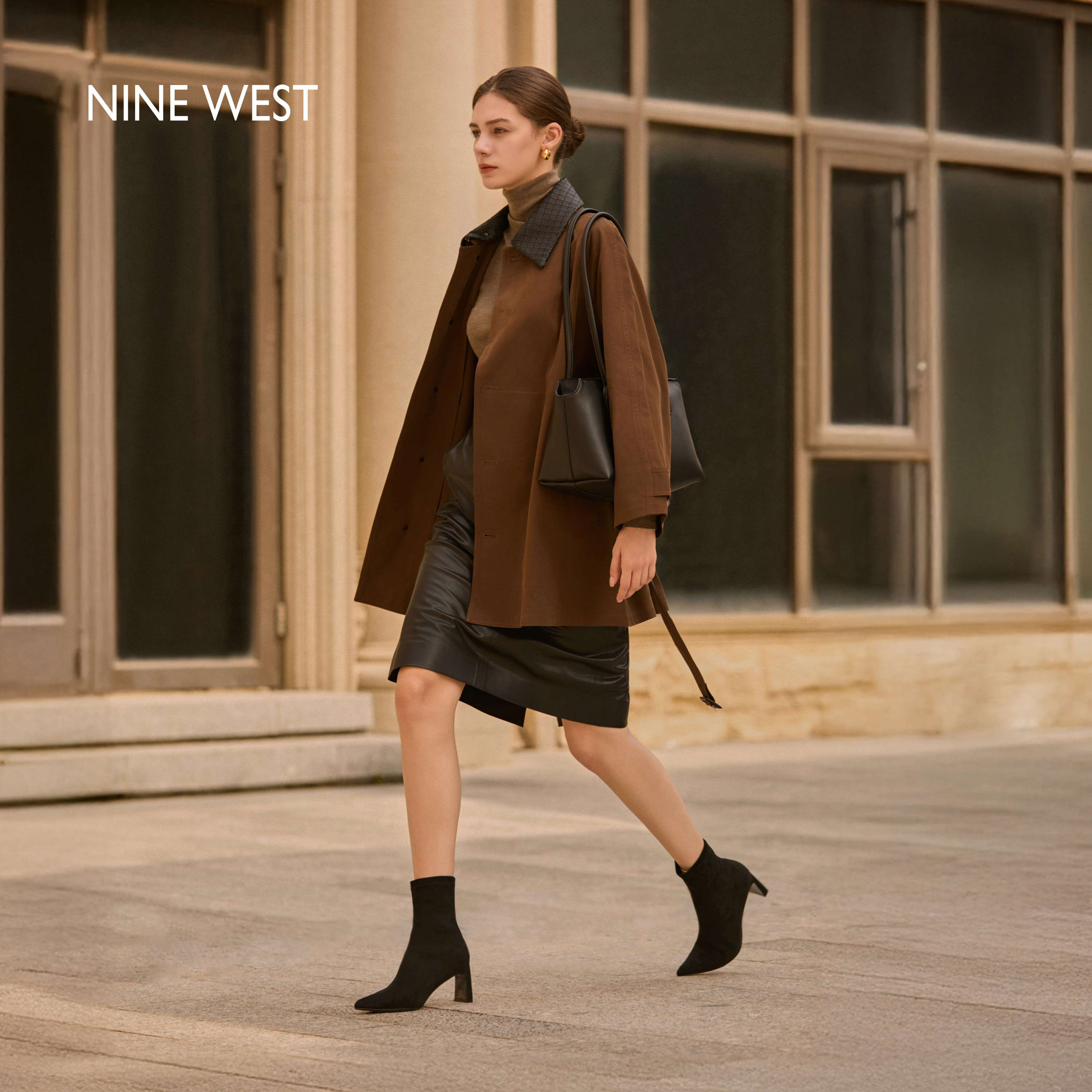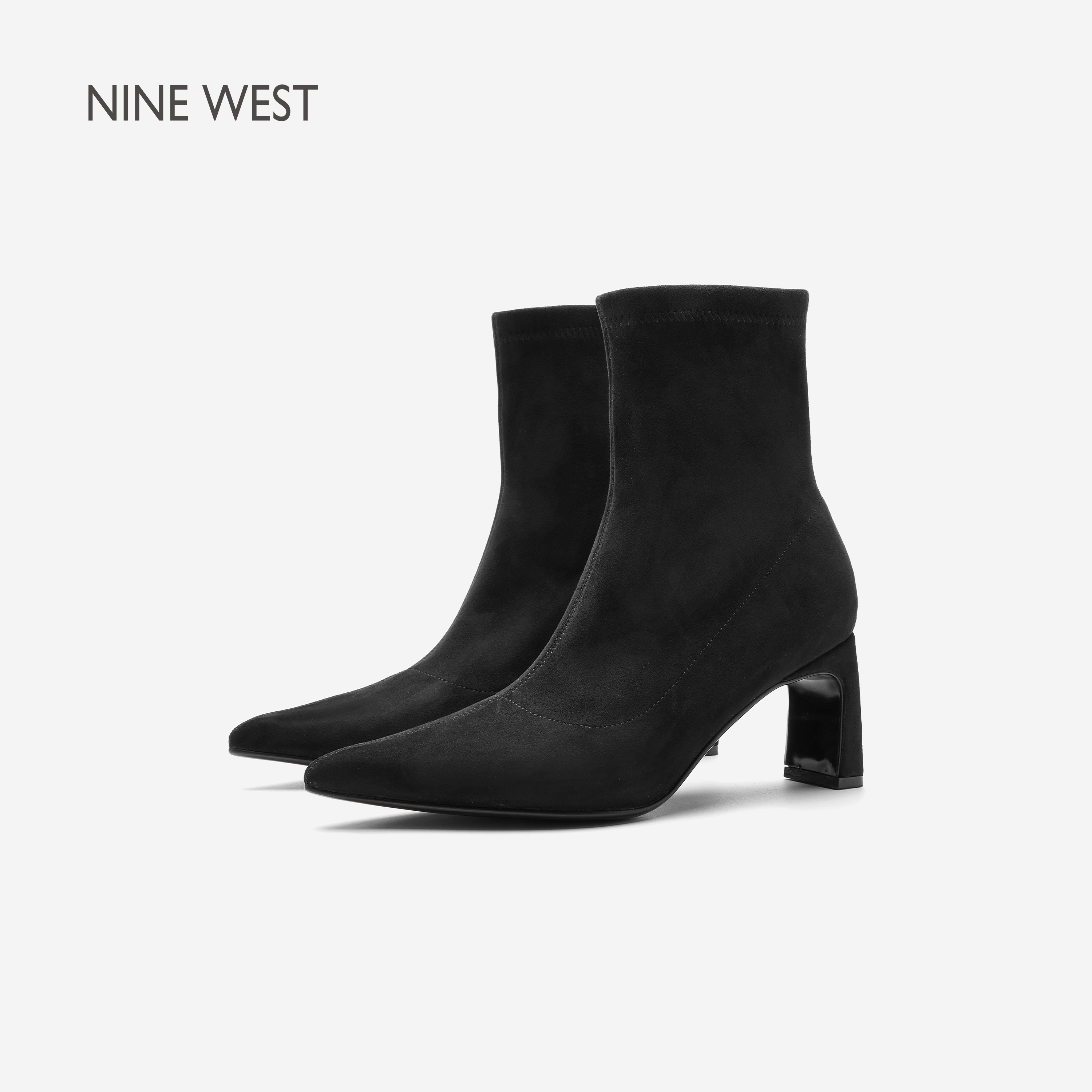 气质复古瘦瘦弹力时装 Nine 新款 玖熙尖头高跟短靴2025秋季 靴 West