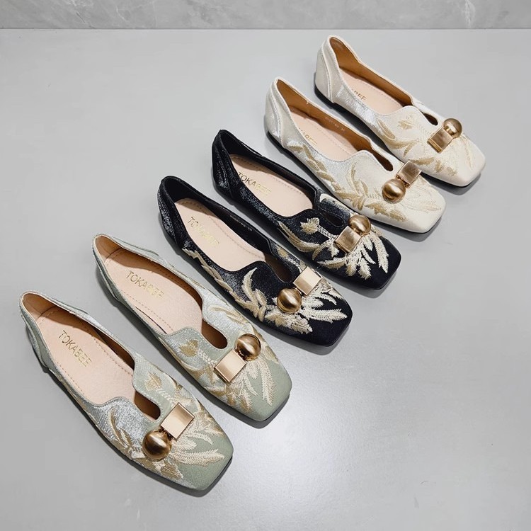 低跟女鞋 新款 百搭方头单鞋 女豆豆鞋 复古新中式 平底乐福鞋 2025春季