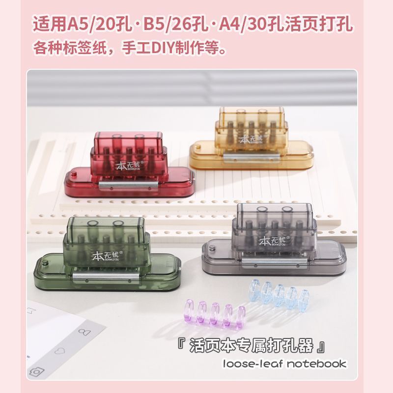 5孔打孔器便携式 打孔机活页本手工小型复古透明色不费力手动多功能