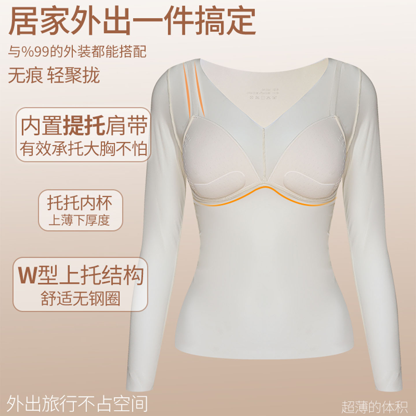 肌底上衣秋衣秋裤 猫人美肤衣女士秋冬季 保暖内衣女带胸垫内搭修身