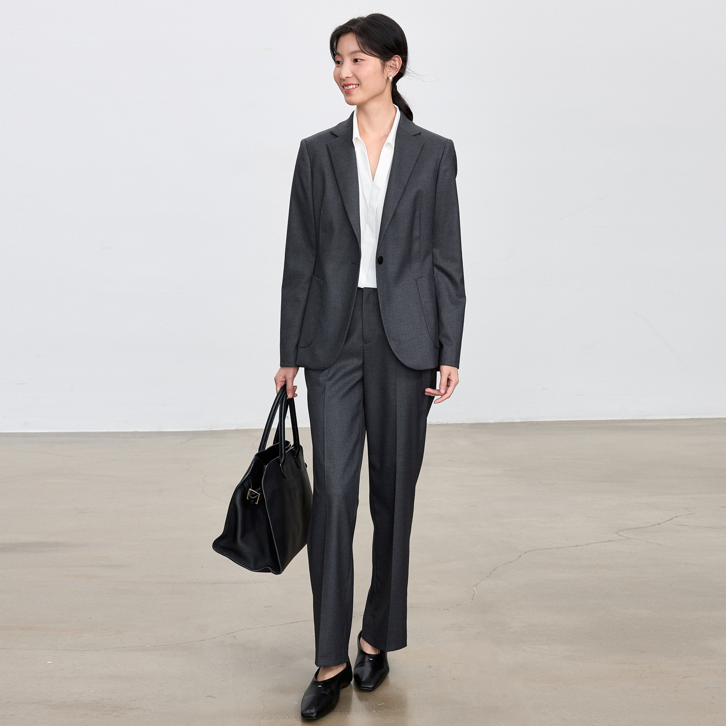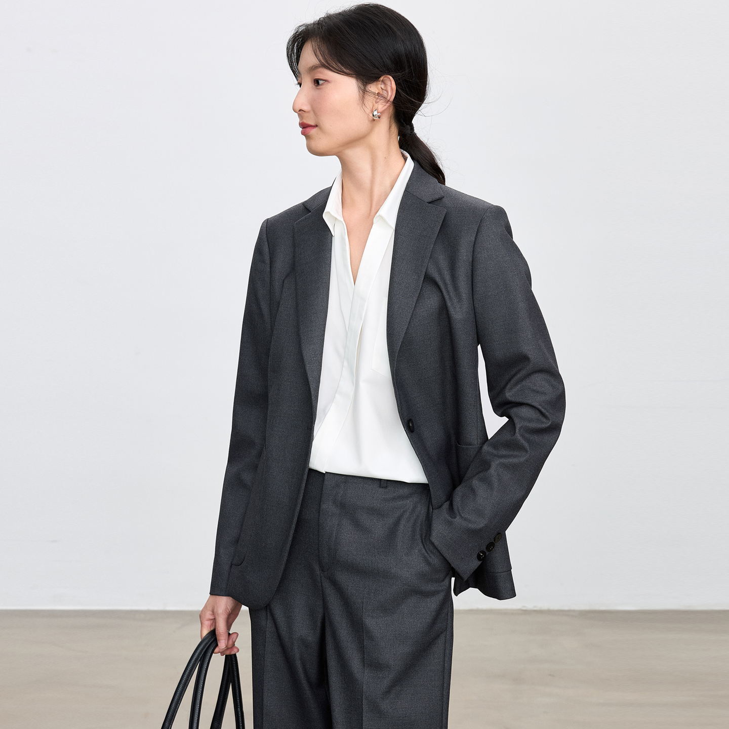 格子秋季 套装 新款 高级感一粒扣小西装 两件套 职业工装 灰色长裤 女裤