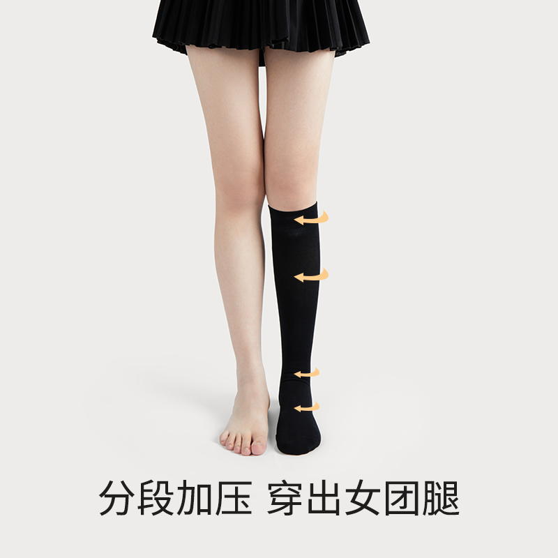 压力小腿袜女秋冬季 强压瘦腿中筒jk袜子长袜过膝袜防滑黑色长筒袜