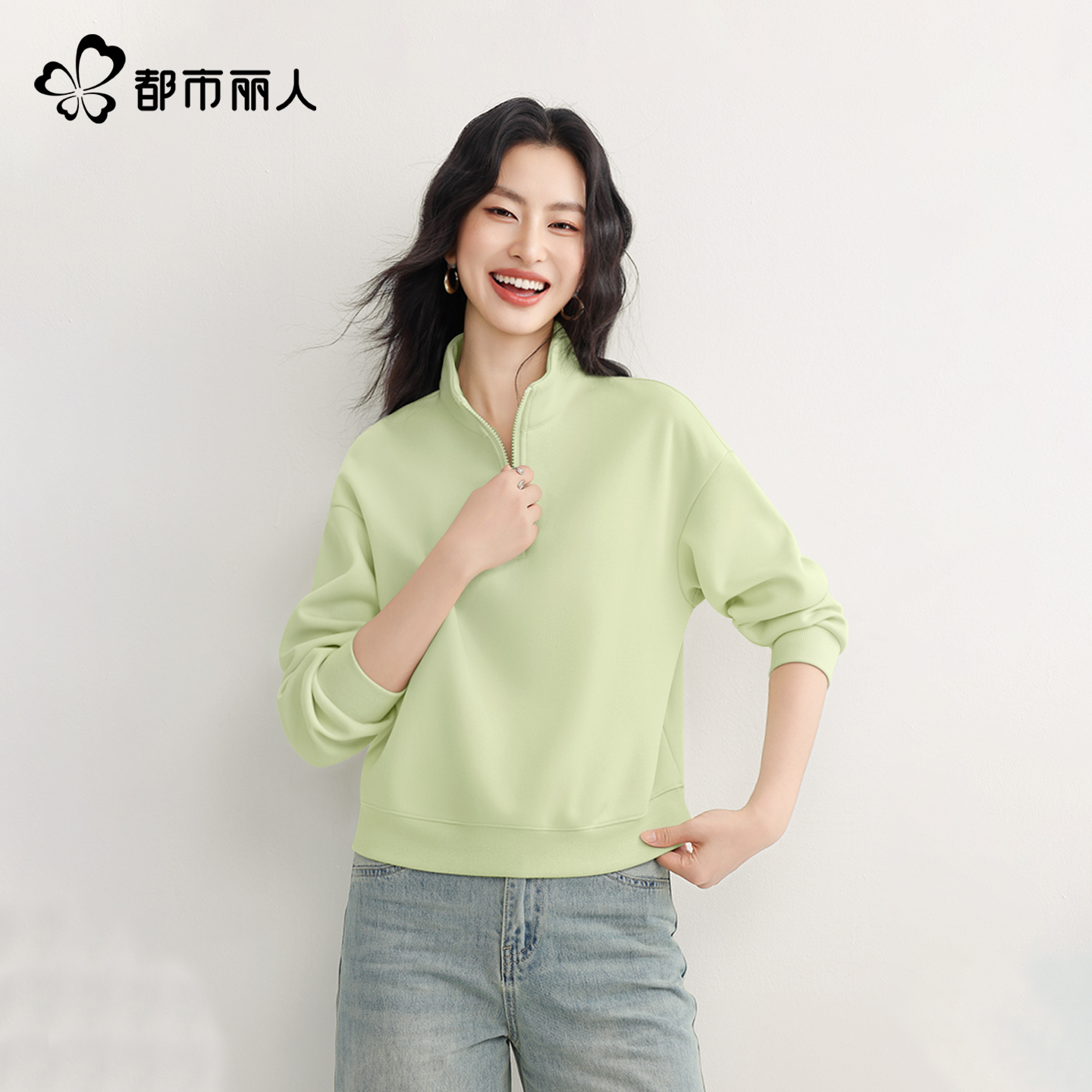 时尚 都市丽人短款 早秋爆款 2025新款 洋气半拉链女士外套A 卫衣女款