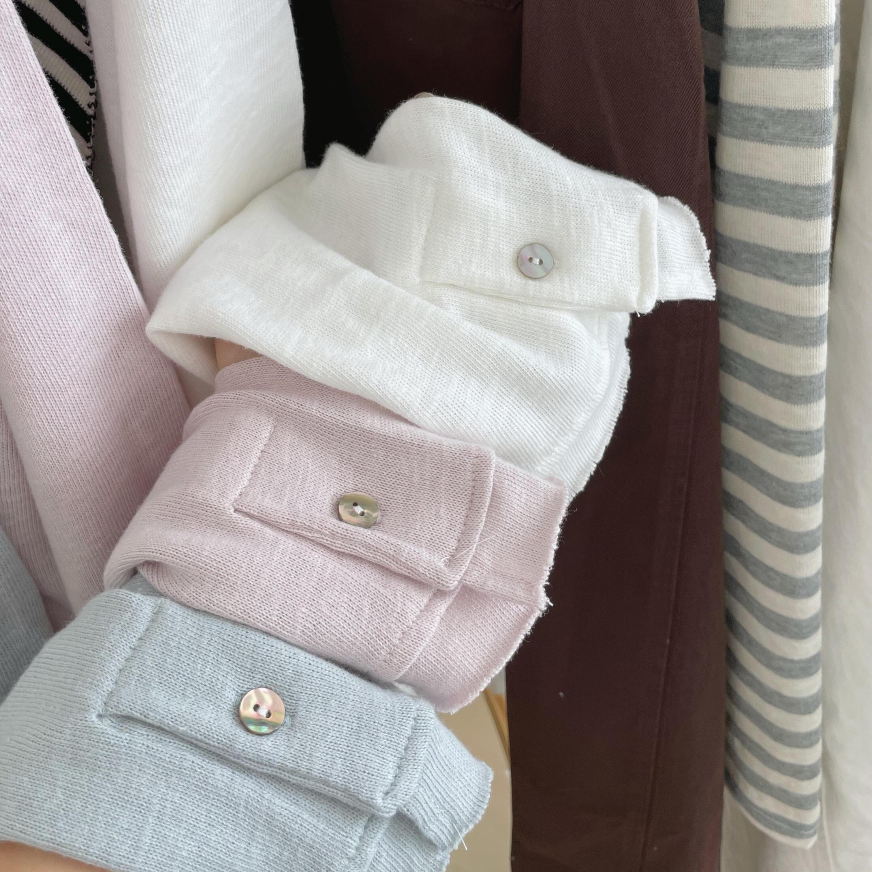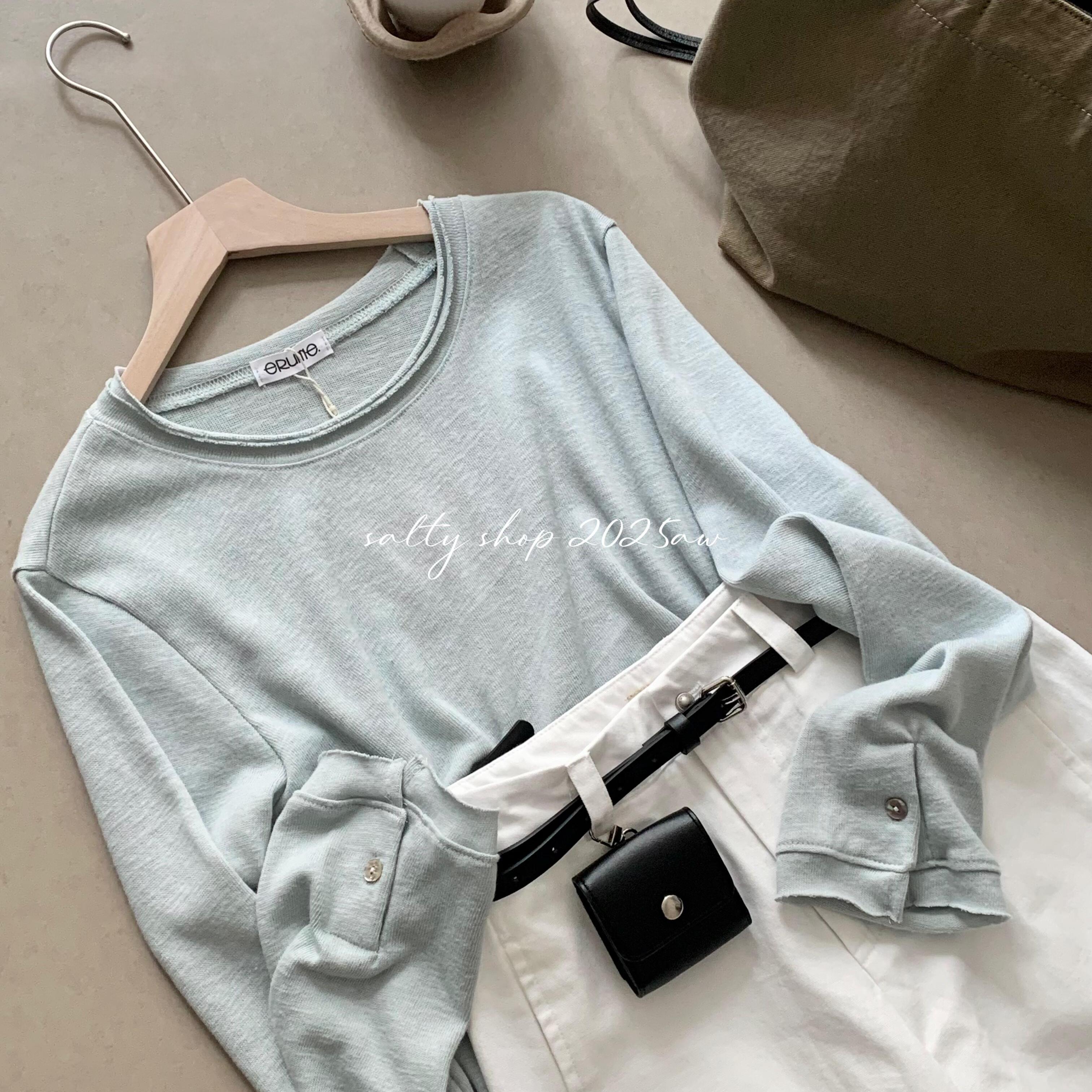 松弛感宽松百搭卷边设计感长袖 女秋季 T恤ins 针织衫 小清新冰透薄款