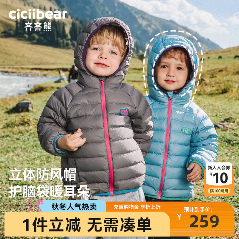 男童外套加厚保暖儿童校服神器 齐齐熊宝宝轻薄羽绒服冬款 90绒子